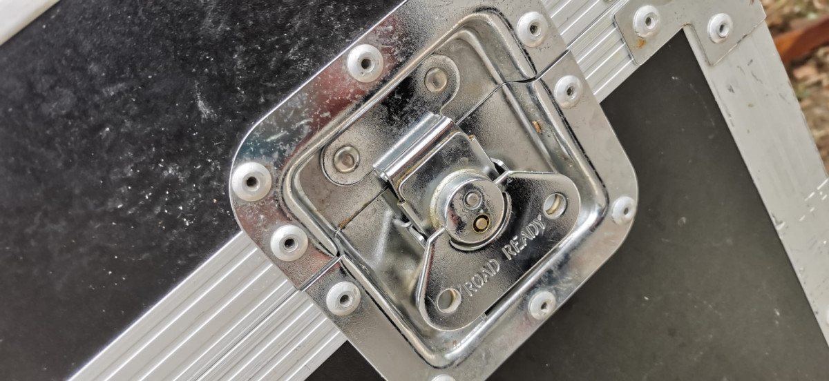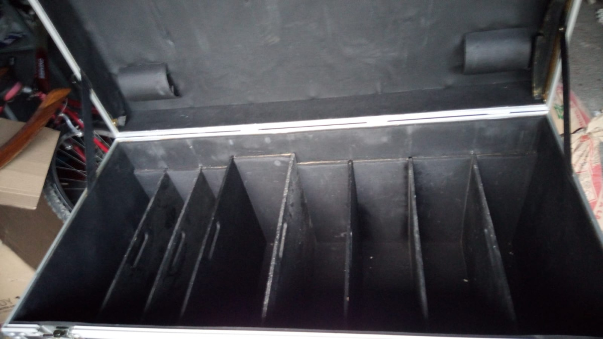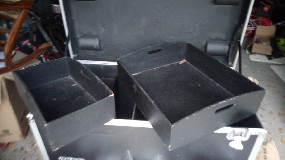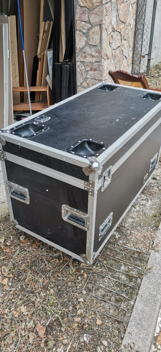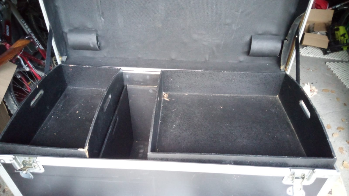 Flight case con ruedas de la Marca Road Ready. En perfecto estado funcional. Dentro lleva dos bandejas y varios separadores para clasificar el material. Todos los cierres van perfectos. Las ruedas tambien. Ha viajado muy poco. Solo tiene daños estéticos superficiales en la madera.