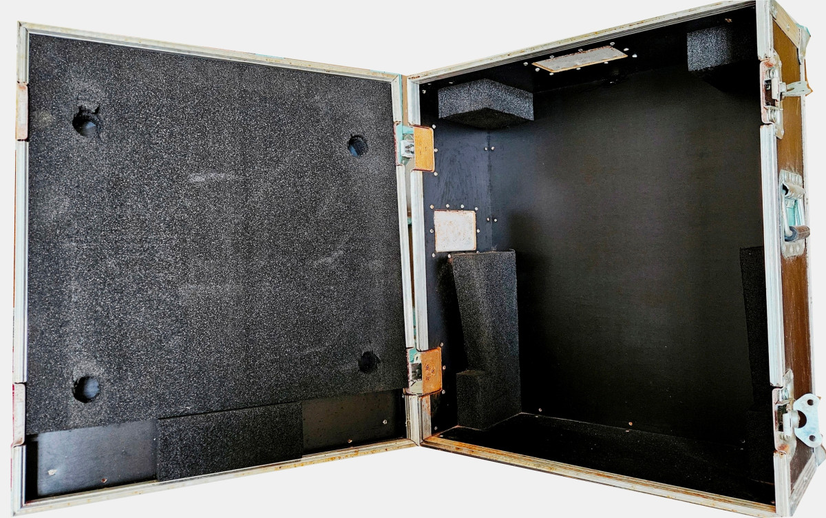 Fly case Yamaha para mesa LS9-16, hecho a medida en Siluj (León) para la misma. Sólo usado para su transporte hasta Avilés en el momento de la compra (2008). Herrajes con algo de óxido por el desuso, pero abren y cierran bien.