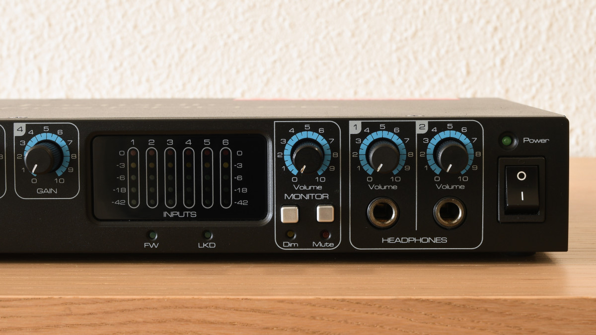 Sobre todo destaco los previos cristalinos, la precisión y comodidad de la pantalla frontal que muestra los niveles de entrada, los controles dedicados para monitores y auriculares, y la entrada ADAT.