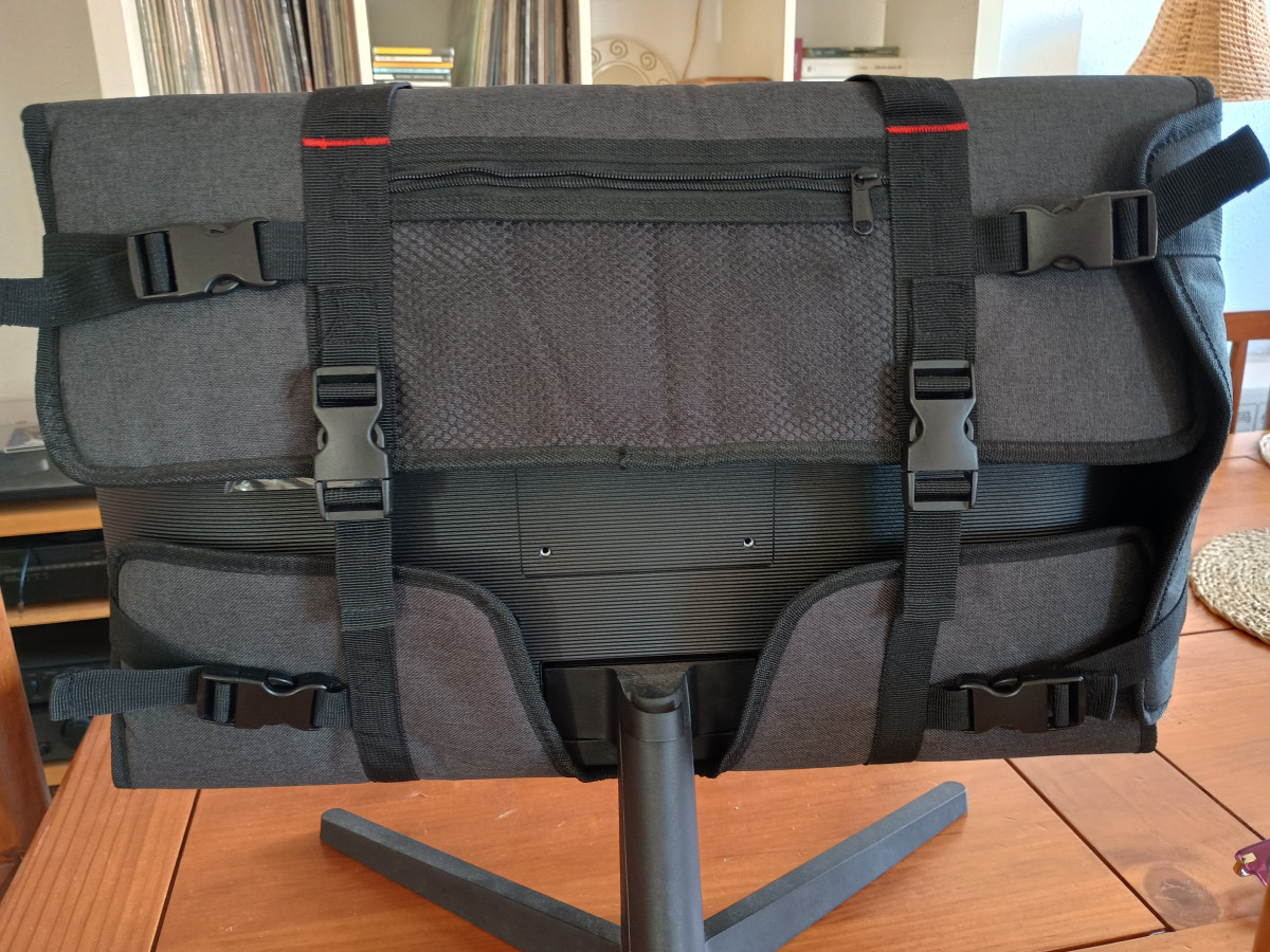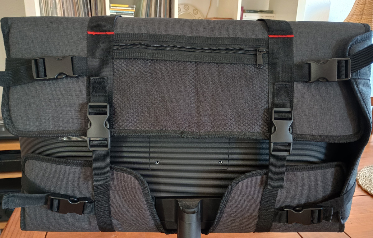 Perfecta para llevar monitores sin riesgo de daños. Tiene asas y bolsillos para los accesorios.