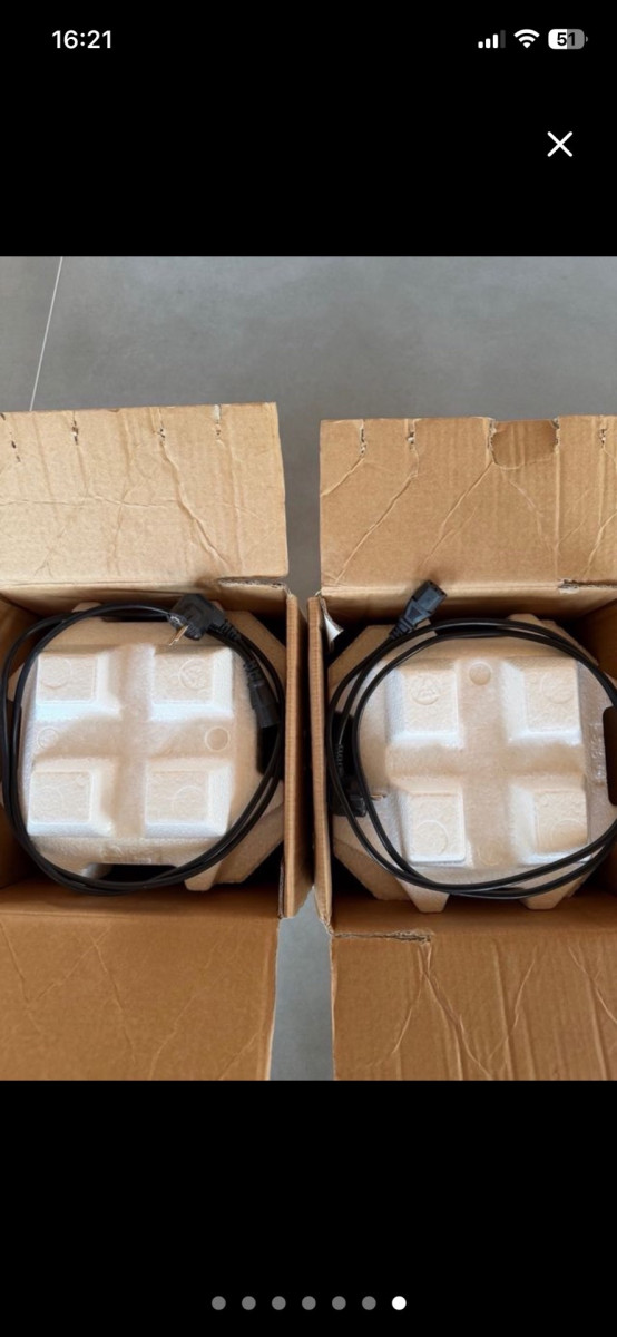 Pareja de monitores de estudio de grabación. En sus cajas.