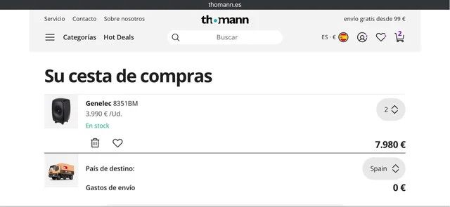 Precio en Thomman sin los soportes para los 8351b es de 7850€. Los gastos de envío corren a cargo del comprador.