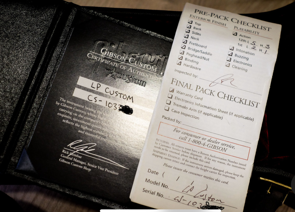 Incluye su certificado de autenticidad, etiquetas y revisión de la Custom Shop, y su estuche original.