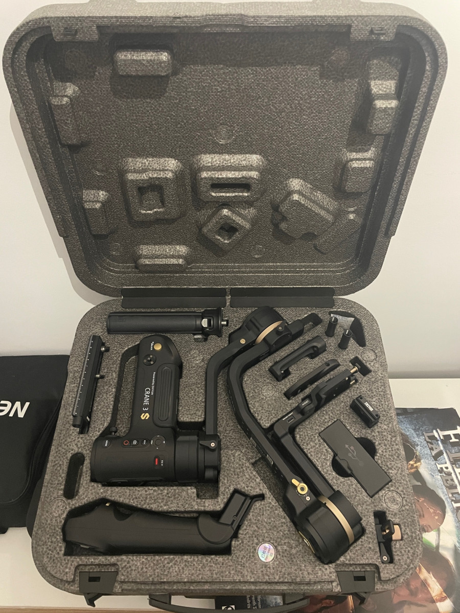 NUEVO!!, comprado para rodaje pero sin uso. Gimbal Crane 3S estabilizador digital inalámbrico, conexión a internet, transmisión de señal de alta definición, accesorios completos, motores electrónicos, follow focus y anillos de enfoque electrónicos, bloqueo central automático, extensor y mando digital, baterías recargables (incluidas), batería recargable de 12 horas, pantalla digital, configuración para movimiento de 360º, cajas originales y cables, compatible con gran variedad de objetivos, fijación de tres ejes que se puede instalar en grua para rodajes de cine o publicidad a gran velocidad. Todo comprado en tienda Zhiyun España. Compatible con cámaras pesadas de cine, Black Magic 6k pro, RED y otras.