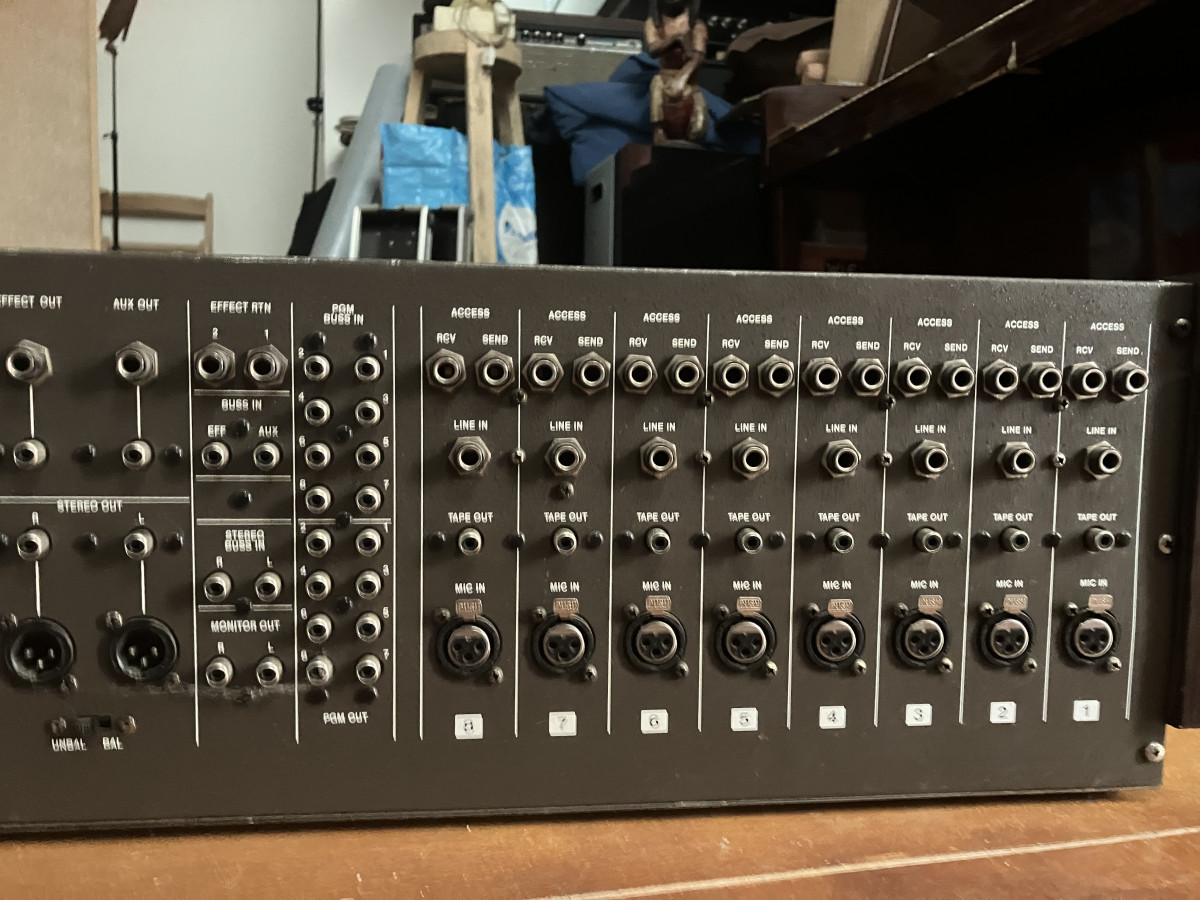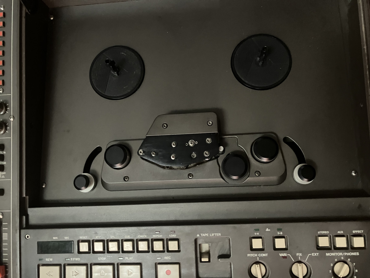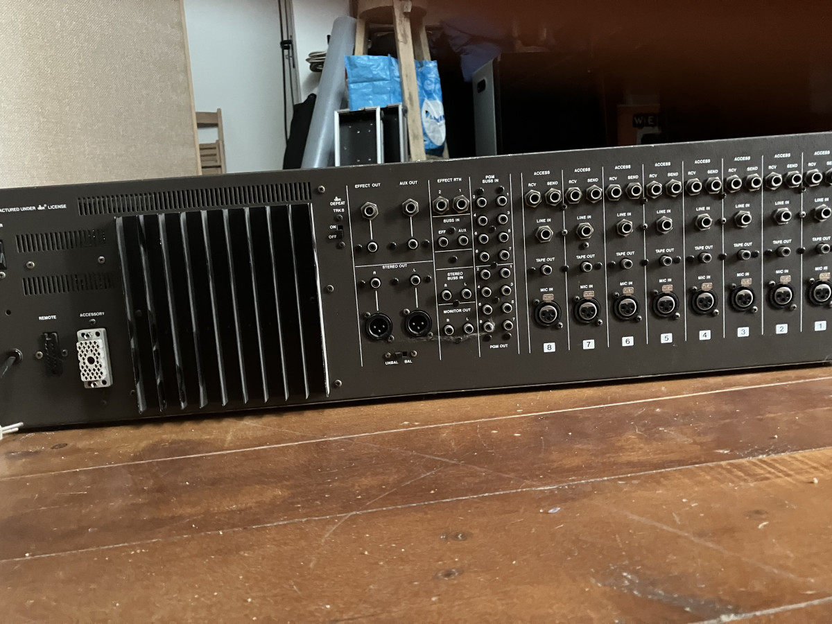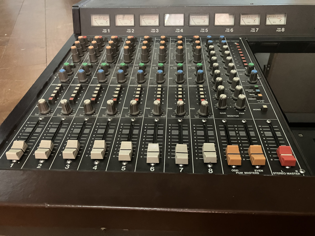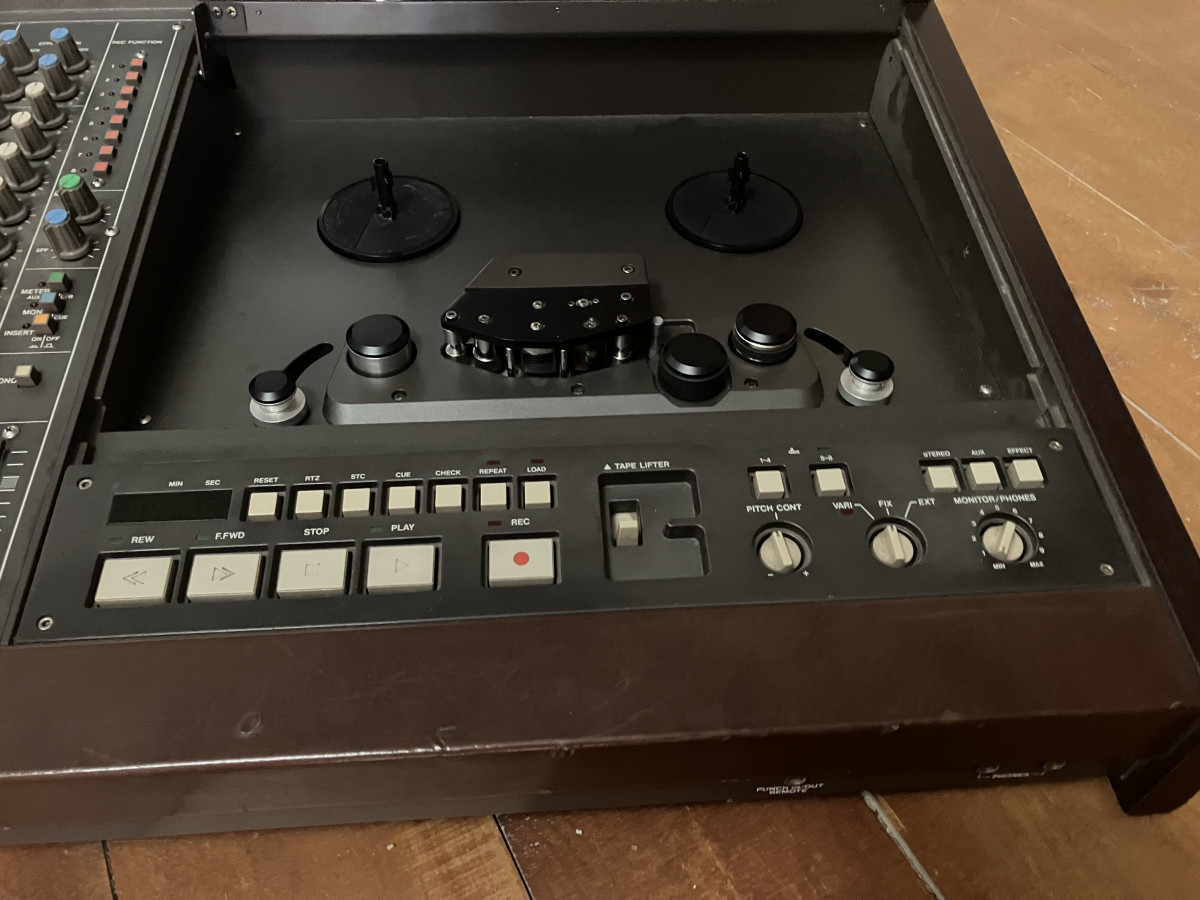 Grabador analógico de 8 pistas a 1/4” de ancho de cinta con mesa de 8 canales integrada.