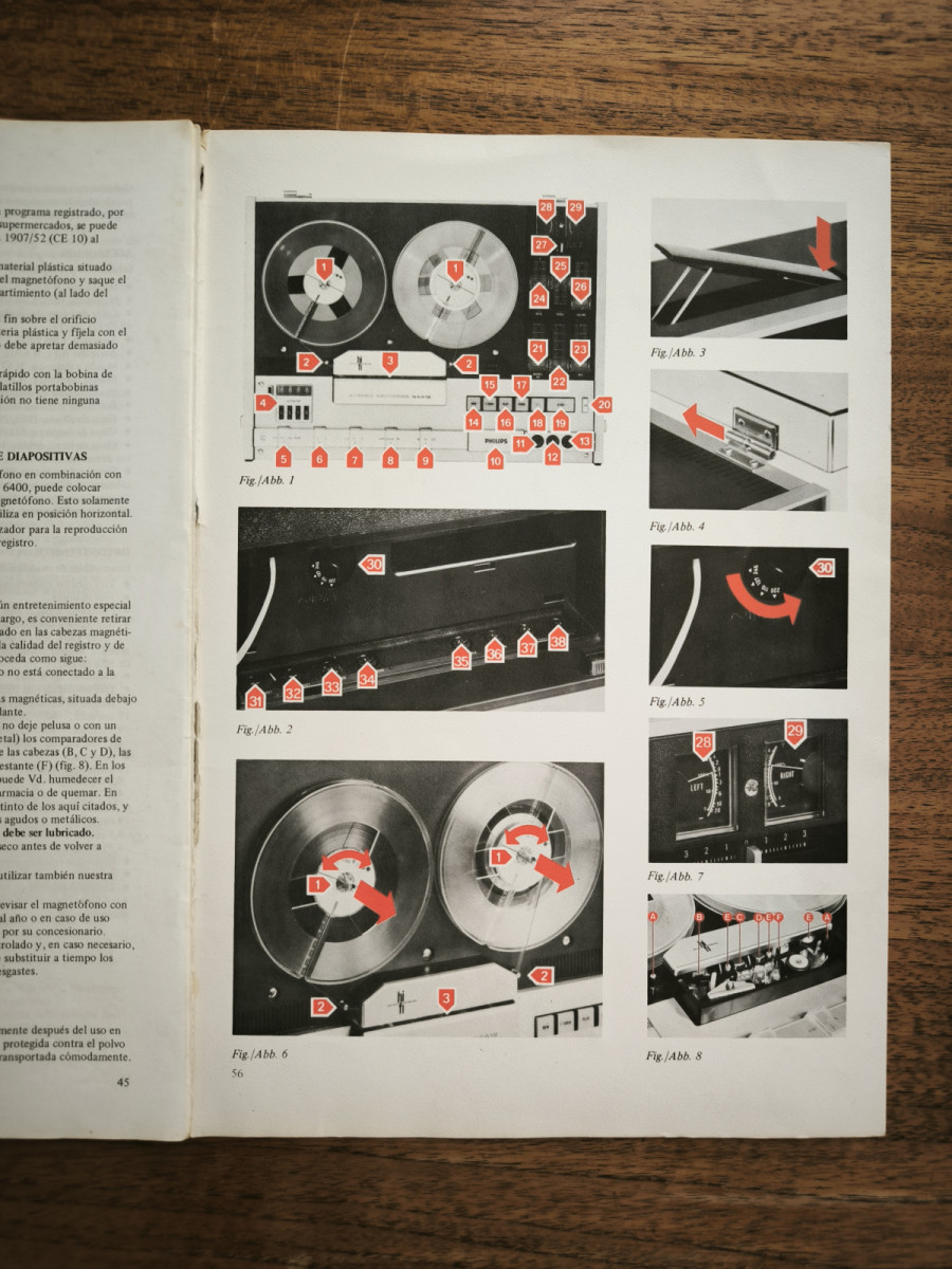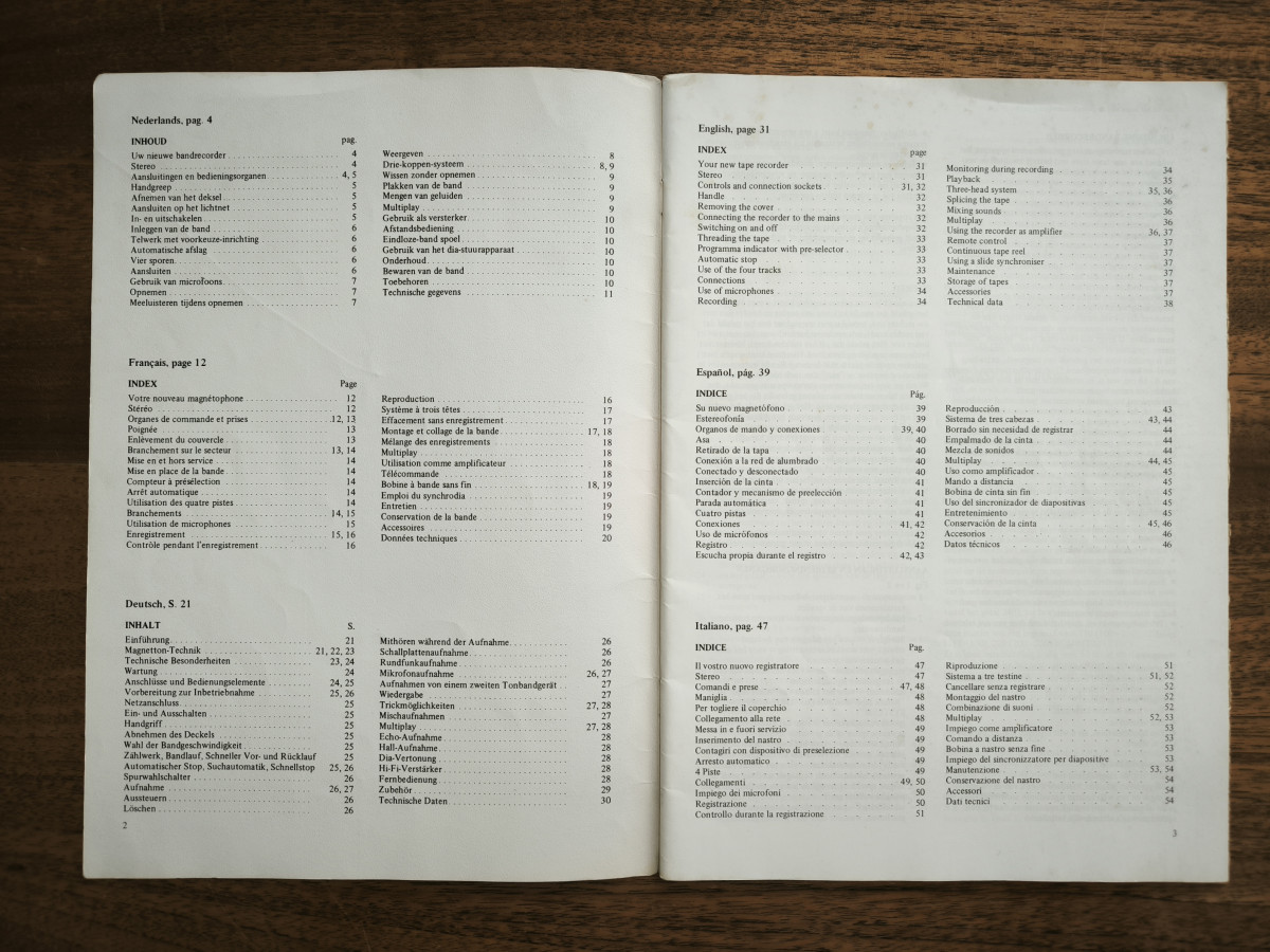 Vendo manual de usuario original de la grabadora stereo Philips N4418. En español, holandés, alemán, francés, inglés e italiano.