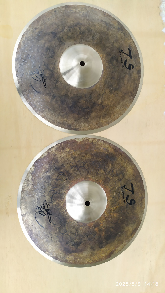Hi hat 14" de alta calidad en aleación B20, hechos a mano. Como el crash (ver mi perfil) de la misma serie, demasiado "dark" en el canto, muy agradable con punta nylon, buen "chick" y al igual que el crash de la misma serie, muchísima personalidad...