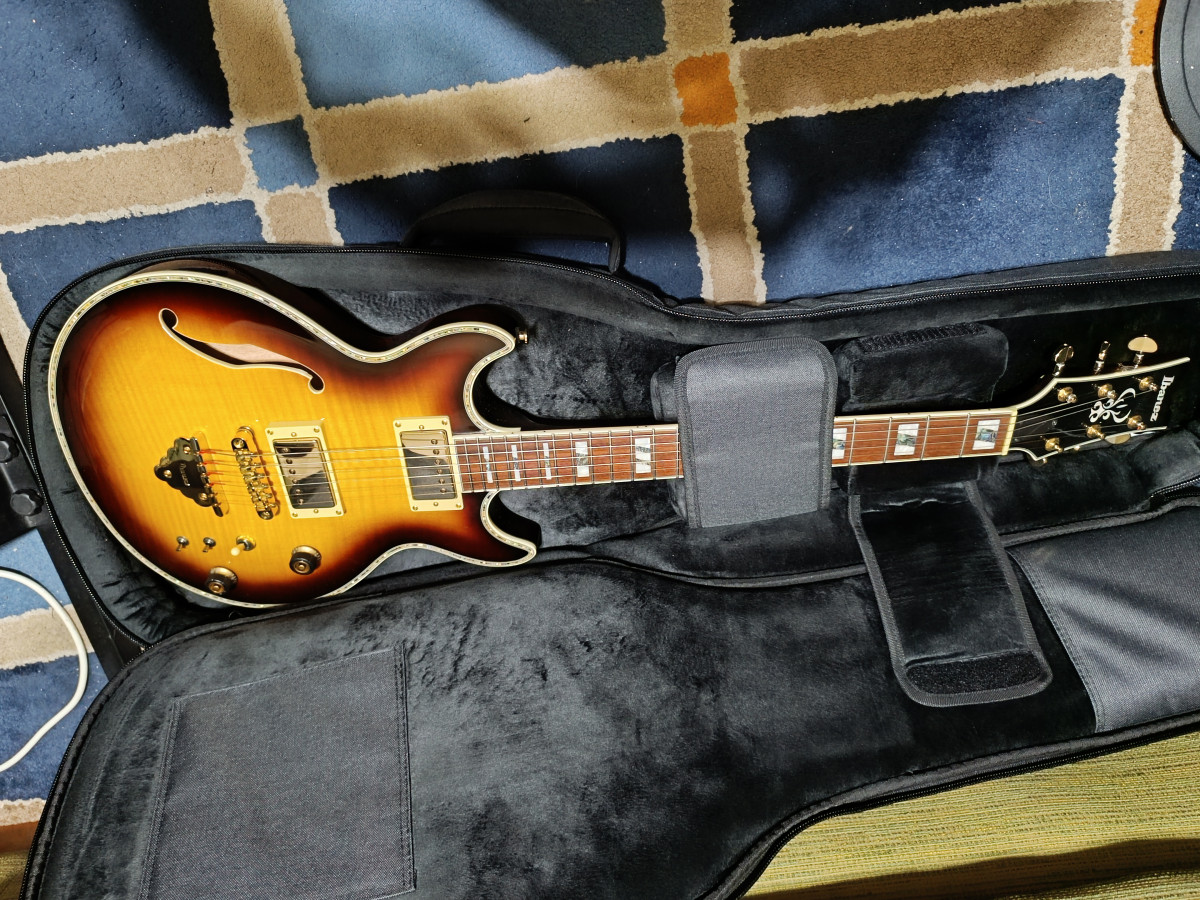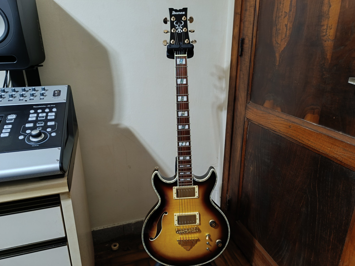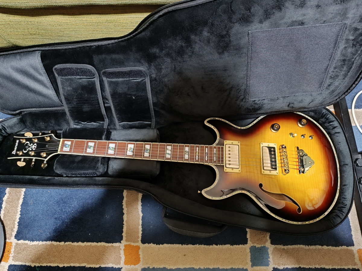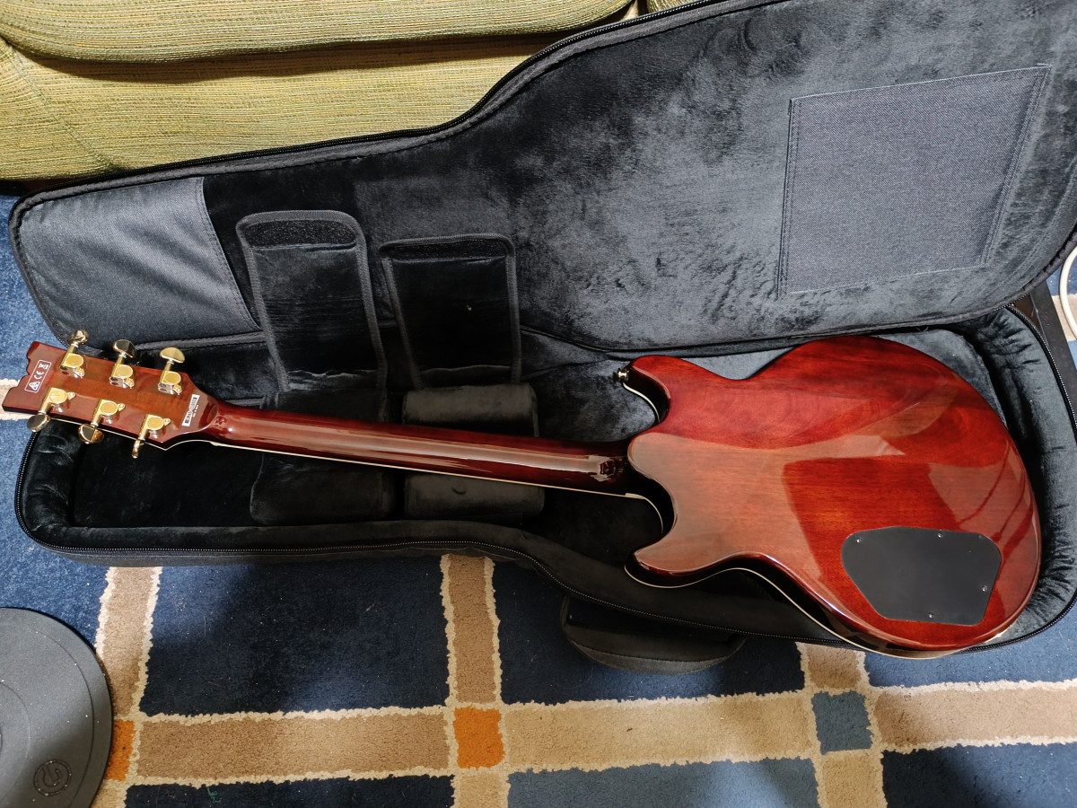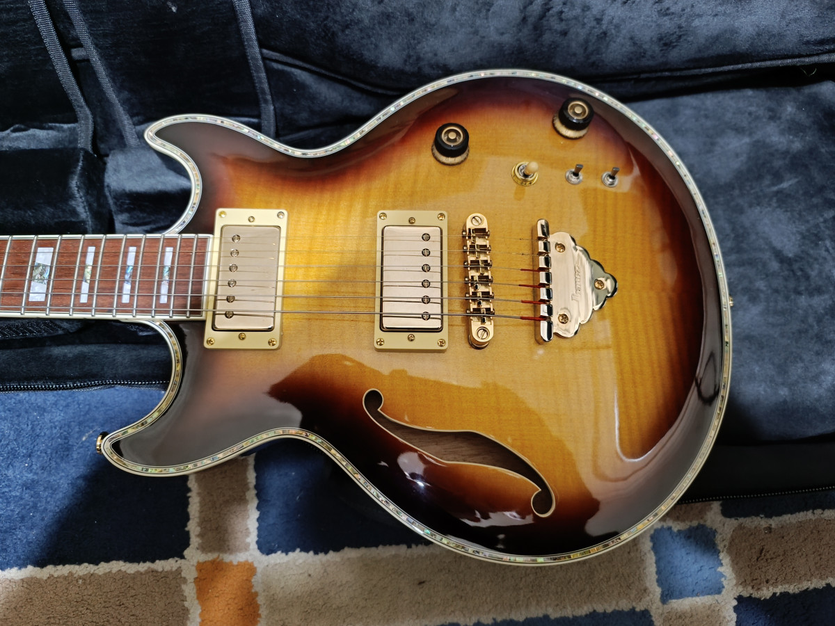 Guitarra eléctrica. Cuerpo de ocume. Tapa de arce flameado. Mástil de arce de 3 piezas. Escala 628 mm. Diapasón de jatoba. Incrustaciones de abulón y acrílicos. 22 trastes. 2 pastillas Super humbuckers 58. Controles volumen y tono. Interruptor de 3 posiciones y Tri- Sound ( humbucker, single coil y paralelo ). Puente Gibraltar performer. Color violín sunburst. En estado impecable, como recién comprada. No incluye funda. Envío incluido. Precio no negociable. No acepto cambios.