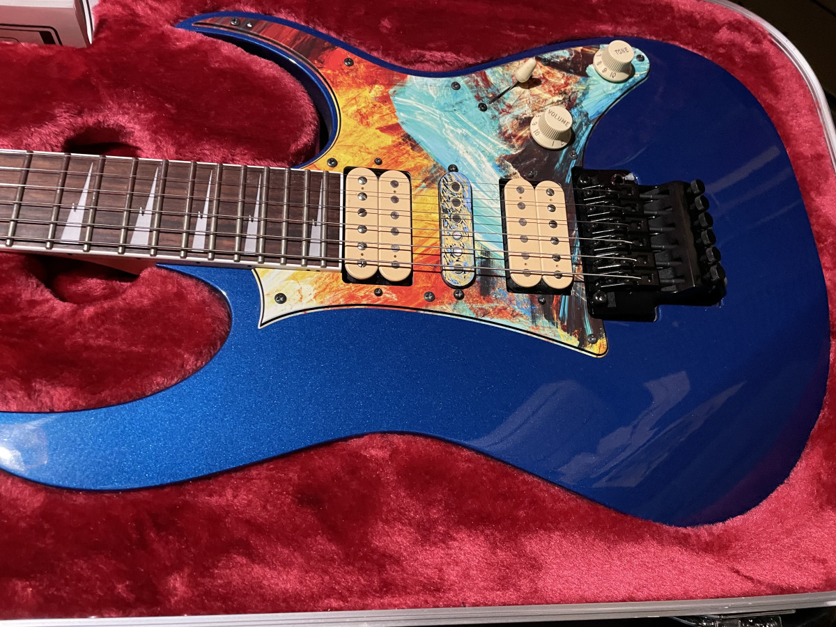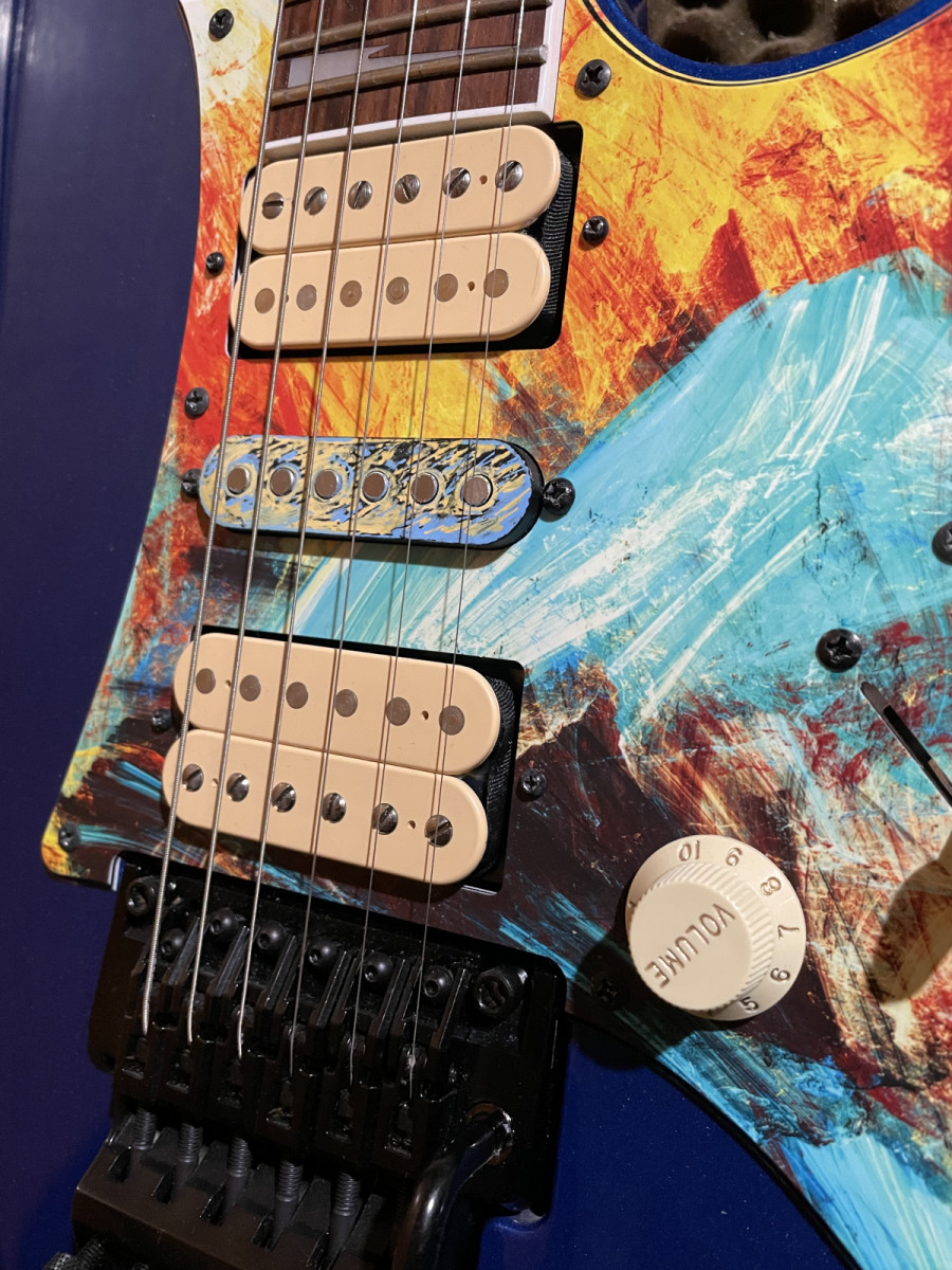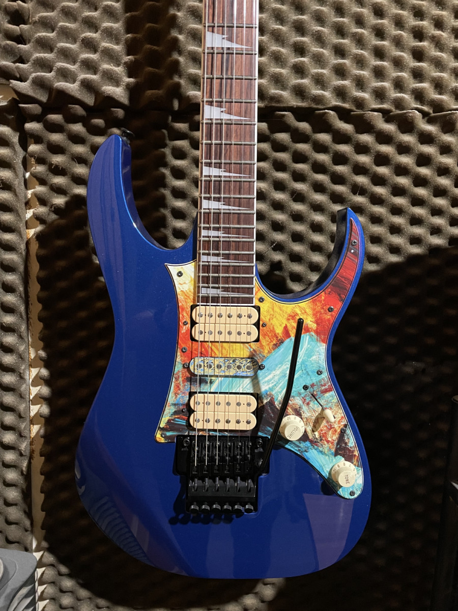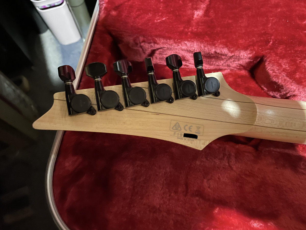 Hola vendo esta Ibanez RG 550 DX Made in Japan Fugigen Genesis series que le cambié el golpeador por uno un tanto "peculiar" y las pastillas por Tone Zone en puente/Air Norton en mástil.