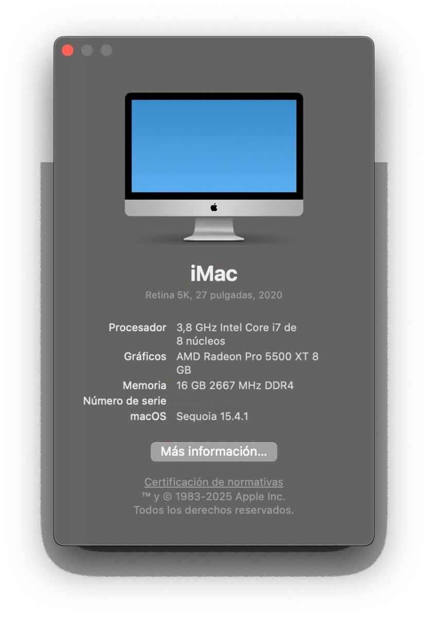 Vendo iMac 27” 5K modelo 2020 con procesador Intel i7 (último modelo Intel).