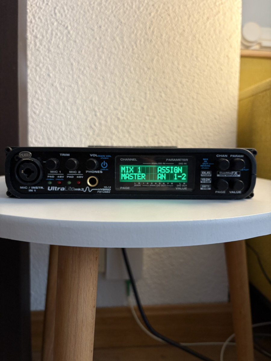 Interfaz de audio MOTU Ultralite MKIII Hybrid. Funciona perfectamente. Muy buen sonido y drivers estables.