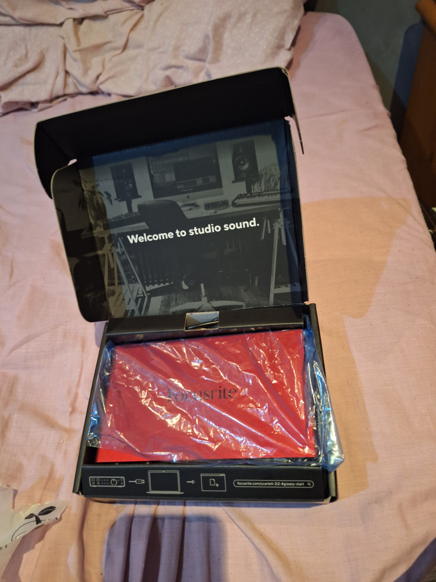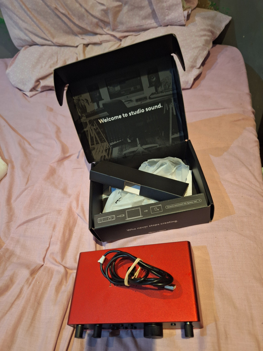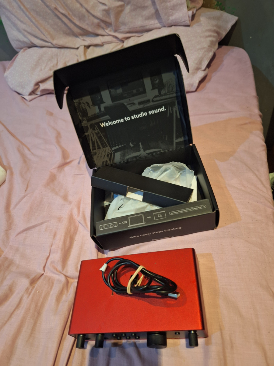 Interfaz de audio Focusrite Scarlett 2i2 de cuarta generación. Se encuentra en excelente estado, casi nueva.- Diseño elegante en color rojo.