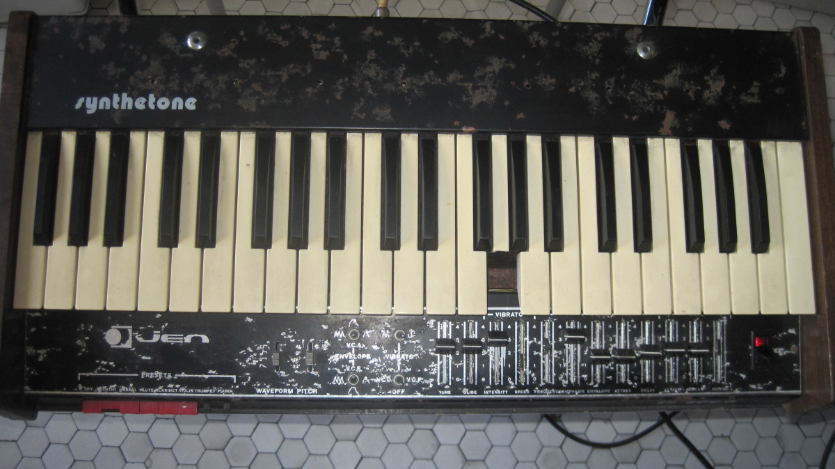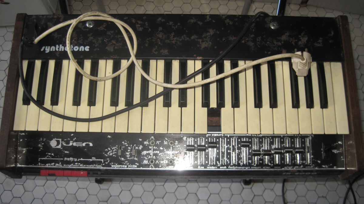 Sintetizador analógico Jen Synthetone Sx 2000 vintage en el estado que se ve en las fotos. Estaba funcionando con algún problema de ruidos y afinación hasta que se guardó hace unos años, ahora al probarlo enciende pero no suena. Se vende para reparar o aprovechar piezas. Podría cambiar por guitarra eléctrica de mi interés. Mejor en mano, envío bien protegido.