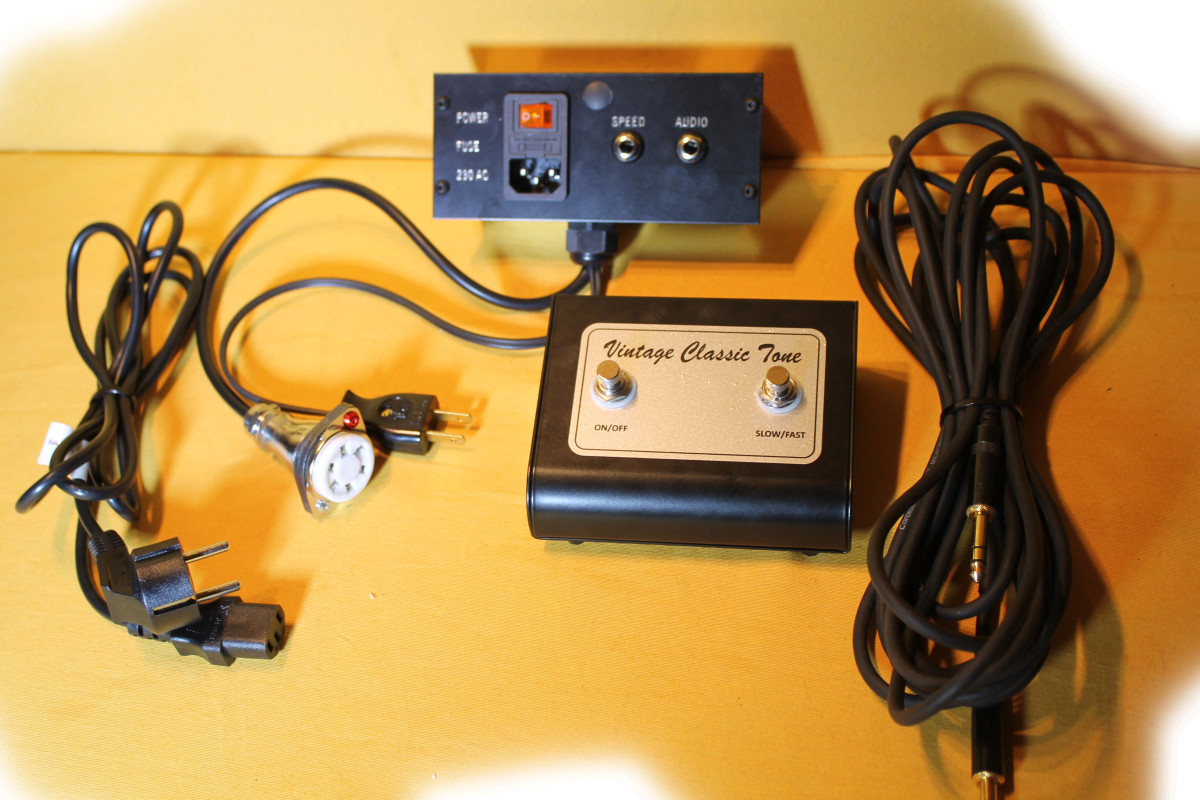Las versiones de los amplificadores Leslie, construidas para el mercado europeo (230V.) en su inmensa mayoría, tienen una característica (supongo que en su momento se tomó por intereses económicos) y es que los motores funcionan con voltaje de 117V., variable que condiciona posibles soluciones, y que está resuelto sin añadir un transformador al efecto como era habitual.