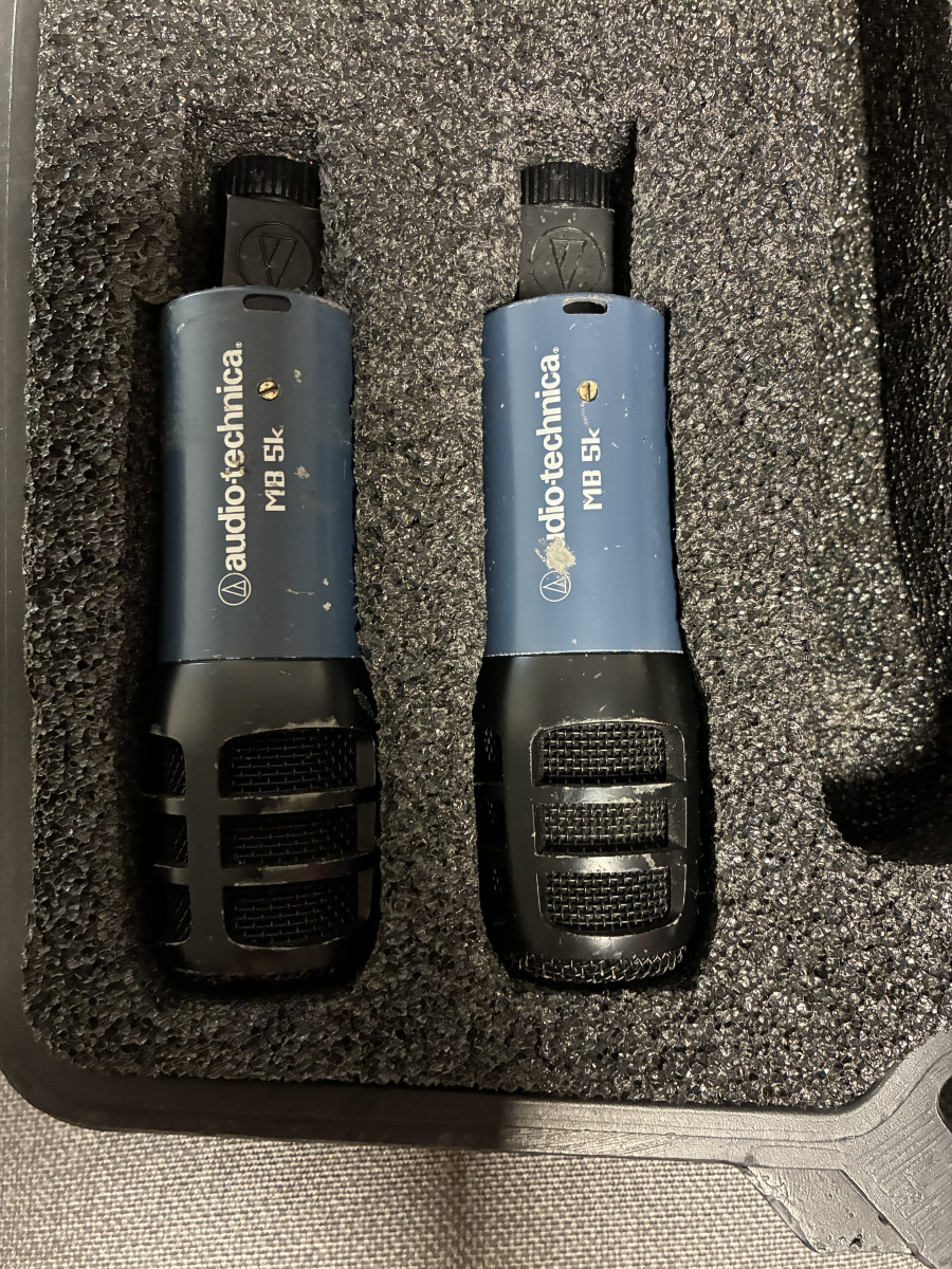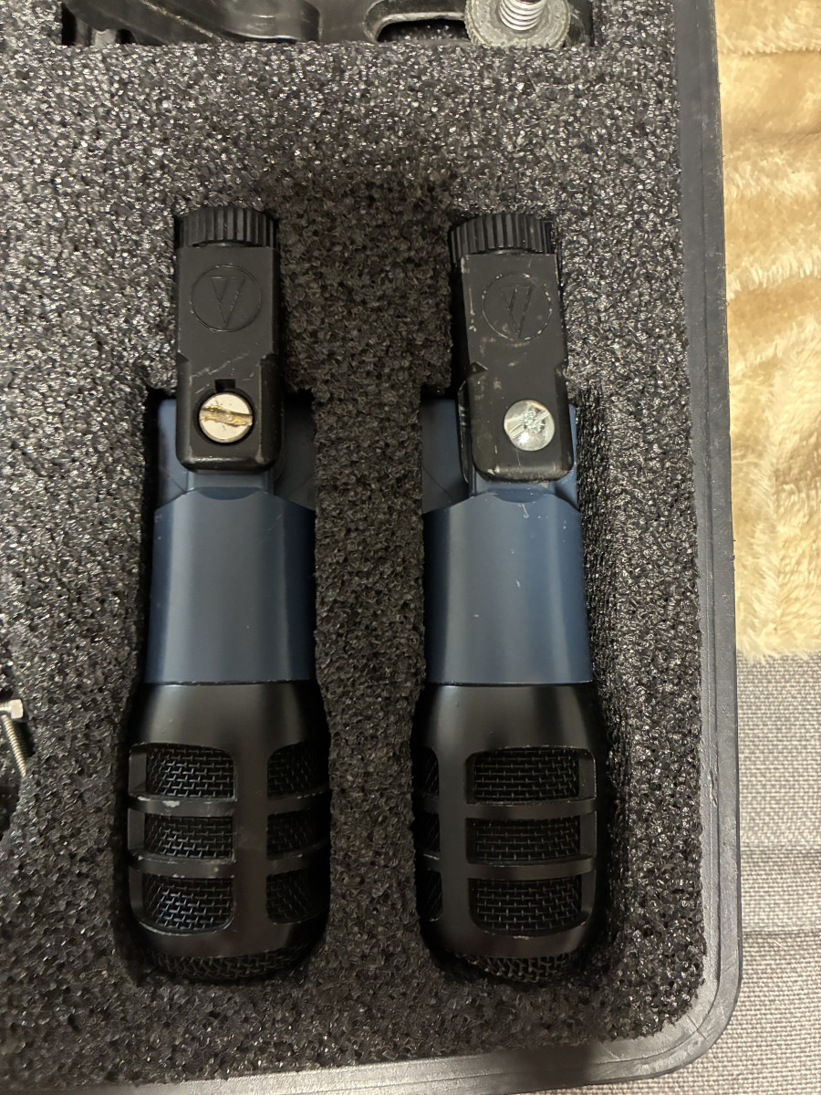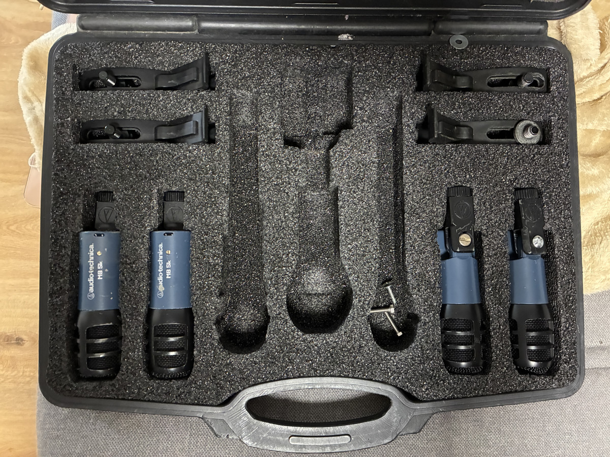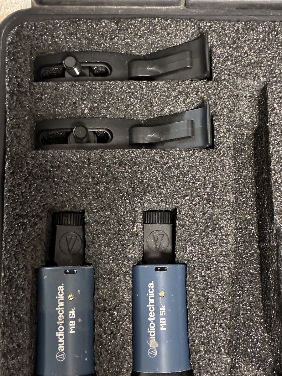 Kit de micrófonos AUDIO TECHNICA para Batería. 4 micrófonos AT MB 5k con sus soportes. Incluye estuche