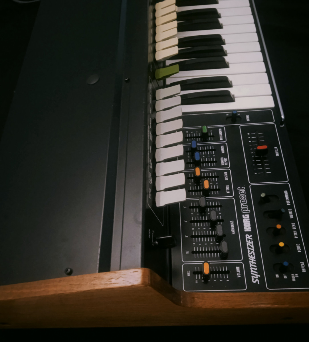 Suena a la epoca totalmente, con filtro traveller y con esa extraña barra de metal a modo de aftertouch a la q se pueden asignar vibrato, pitch, portamento, etc....