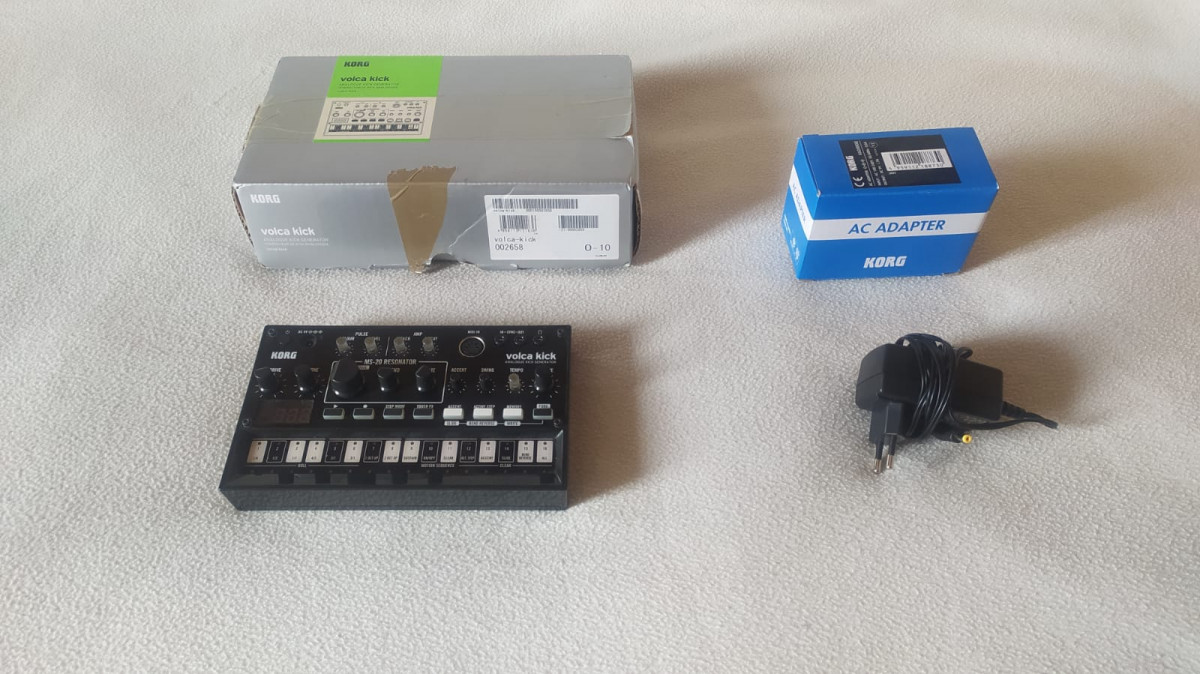 Korg Volca Kick + cargador original Korg. Perfecto estado funcional, muy buen estado estético. Libre de humos.