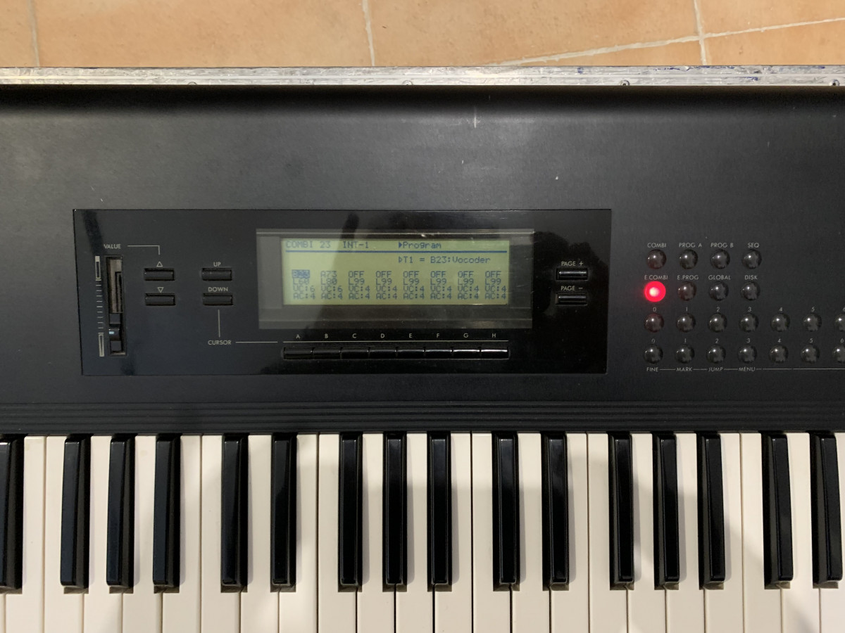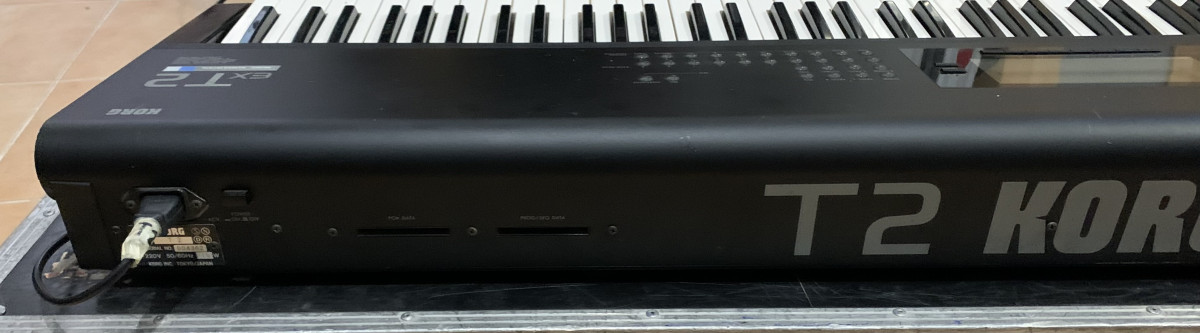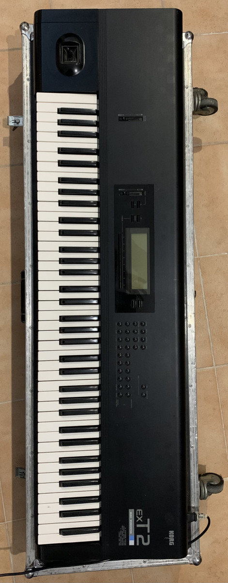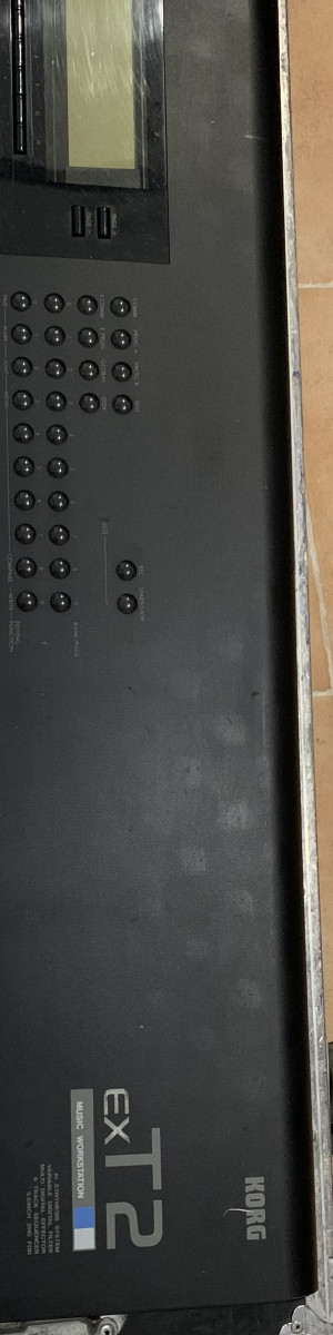 Vendo mi precioso Korg T2 de 1990 en perfecto estado de funcionamiento. Tiene con una pequeña marca en una tecla (parece quemado) que ya tenia cuando se lo compre a su dueño original, soy su segundo dueño. Y se aprecian unas pequeñas "huellas" en el chasis (ver fotos) que dejo el tenerlo en el flightcase durante algún tiempo. Me imagino que se pueden limpiar con algún producto específico.
