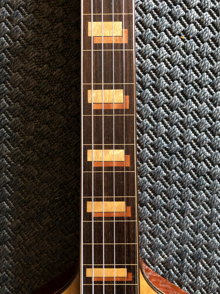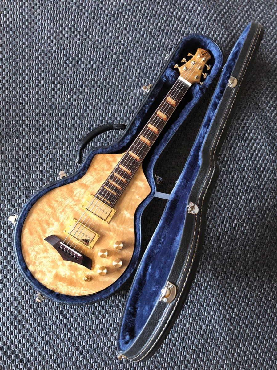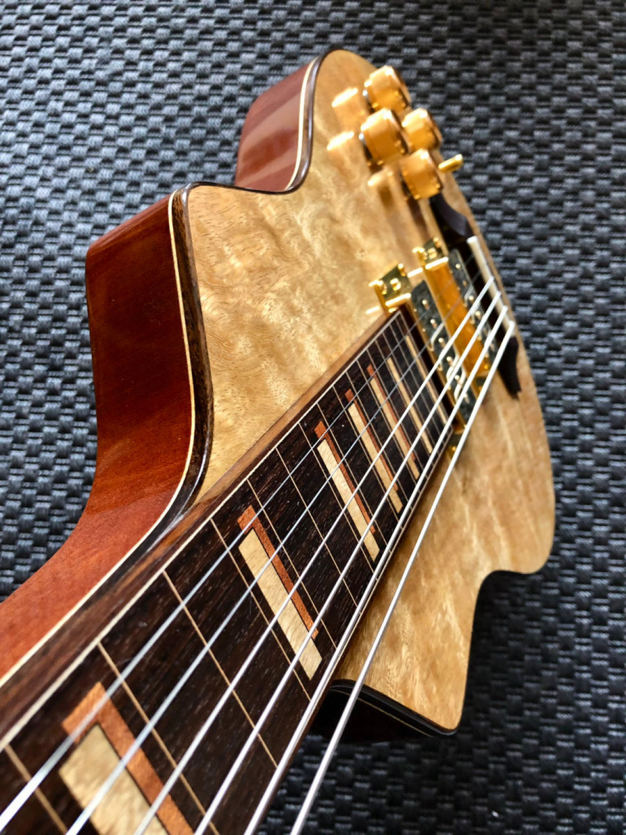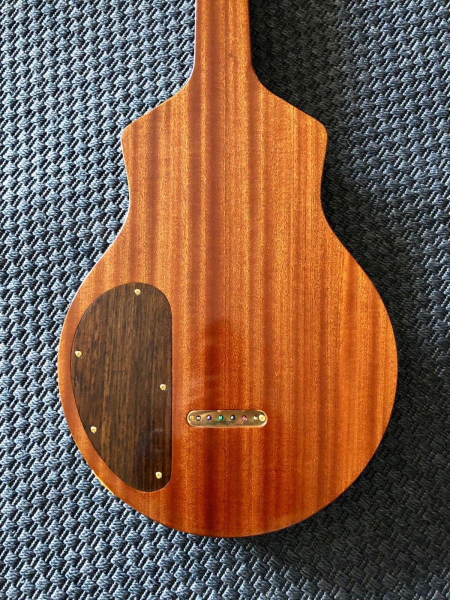 El cuerpo está fabricado en una sola pieza de sapeli.El puente y el diapasón son de palosanto de India con 24 trastes y escala de 24,75’.