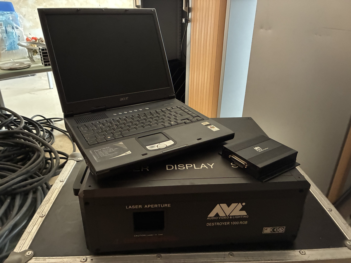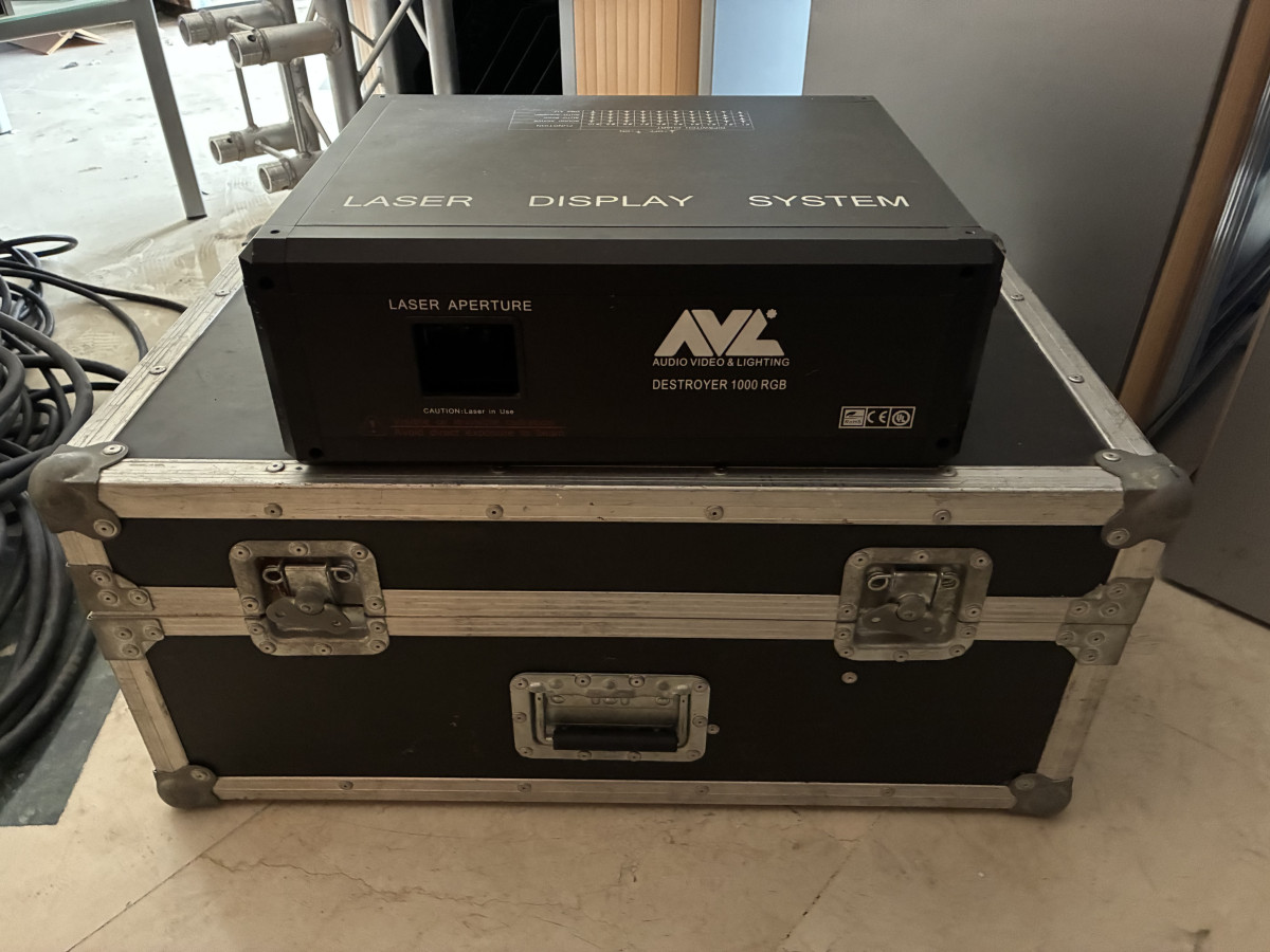 Sistema de proyección láser AVL Destroyer 1000 RGB en buen estado. Incluye un cable HDMI.