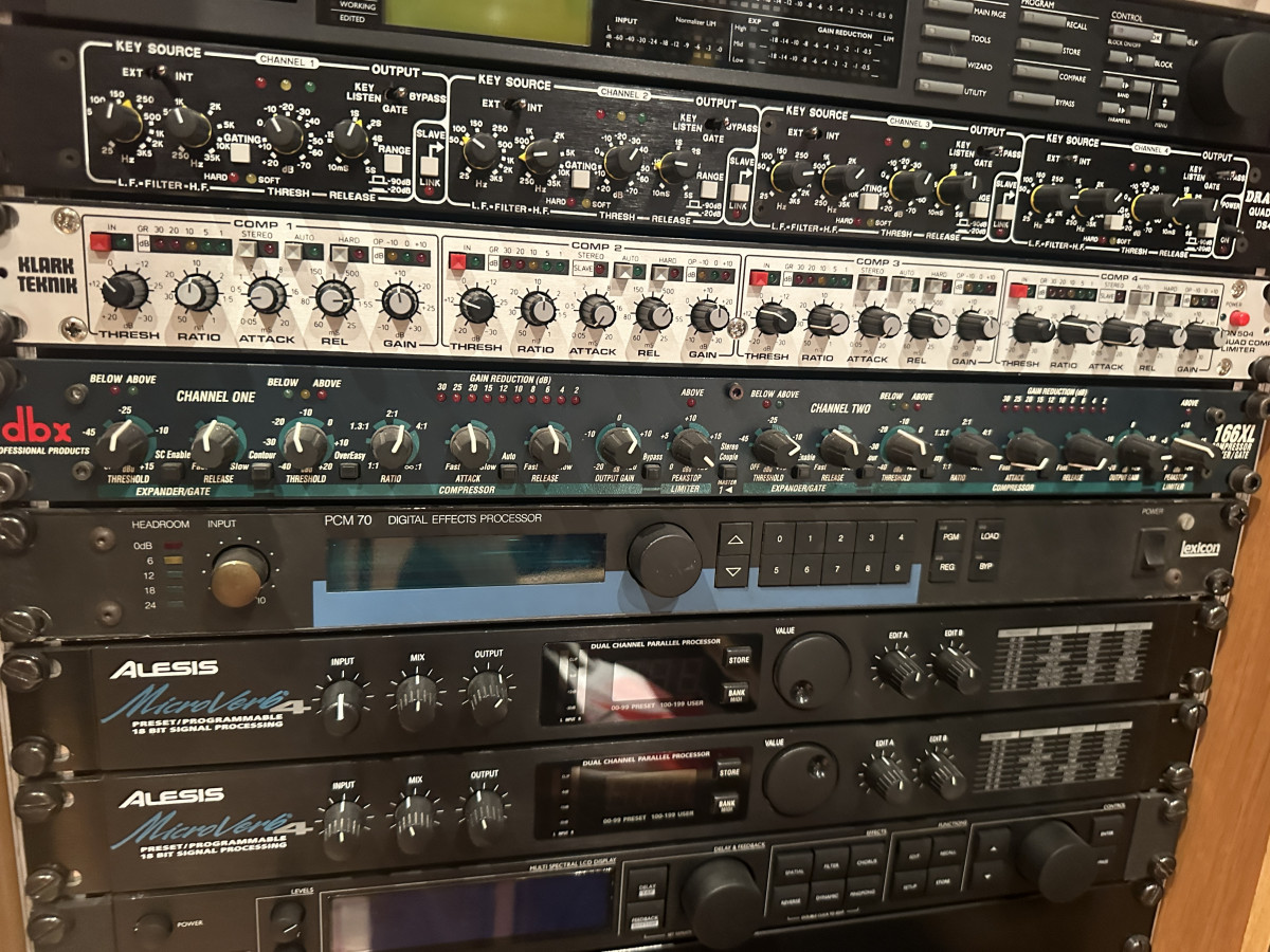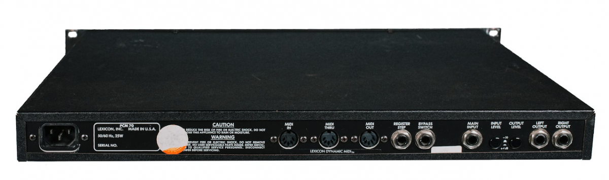 The Lexicon PCM 70 offers 40 factory and 50 user programmable patches of digital effects and reverb programs, like chorus and echo, resonant chords, multiband delay, rich chamber, rich plate, and concert hall.