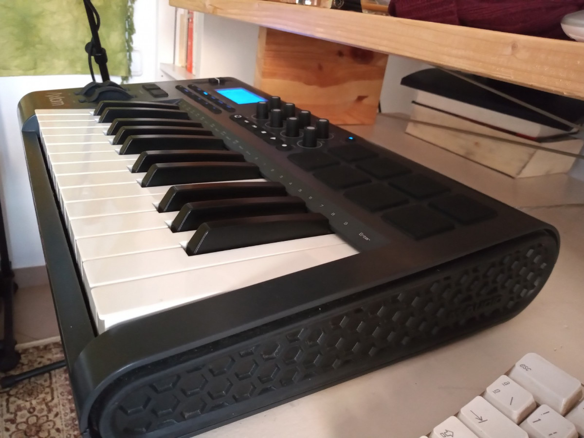 25 teclas semi-pesadas con aftertouch. 4 botones de zona para sumar y dividir sonidos en hasta 4 canales MIDI, 8 trigger pads asignables, 8 encoders asignables, 1 fader asignable, 6 controles específicos de reproducción, 6 botones de edición, entre otras muchas funciones. Compatible con Windows y Mac.