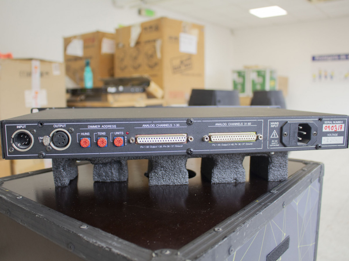 MA DEMULTIPLEXER decodifica señales USITT DMX 512 (1990). Hay dos versiones con 30 o 60 salidas analógicas disponibles con circuitos de 230 V o 110 V.