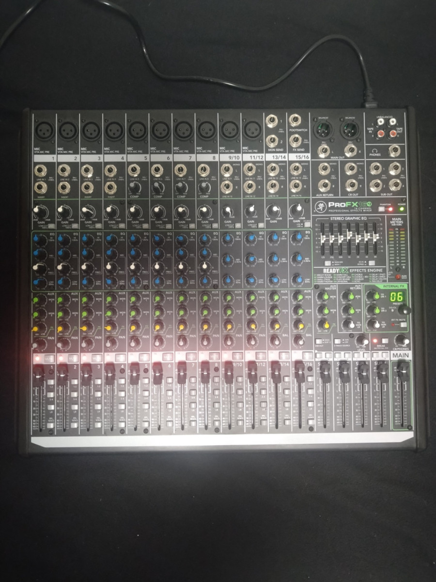 Vendo mesa de mezclas analógica Mackie ProFX16v2 en excelente estado. Es una consola versátil y robusta, ideal tanto para directos como para grabaciones en home studio.