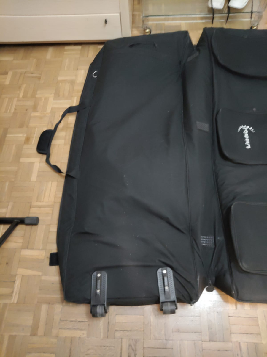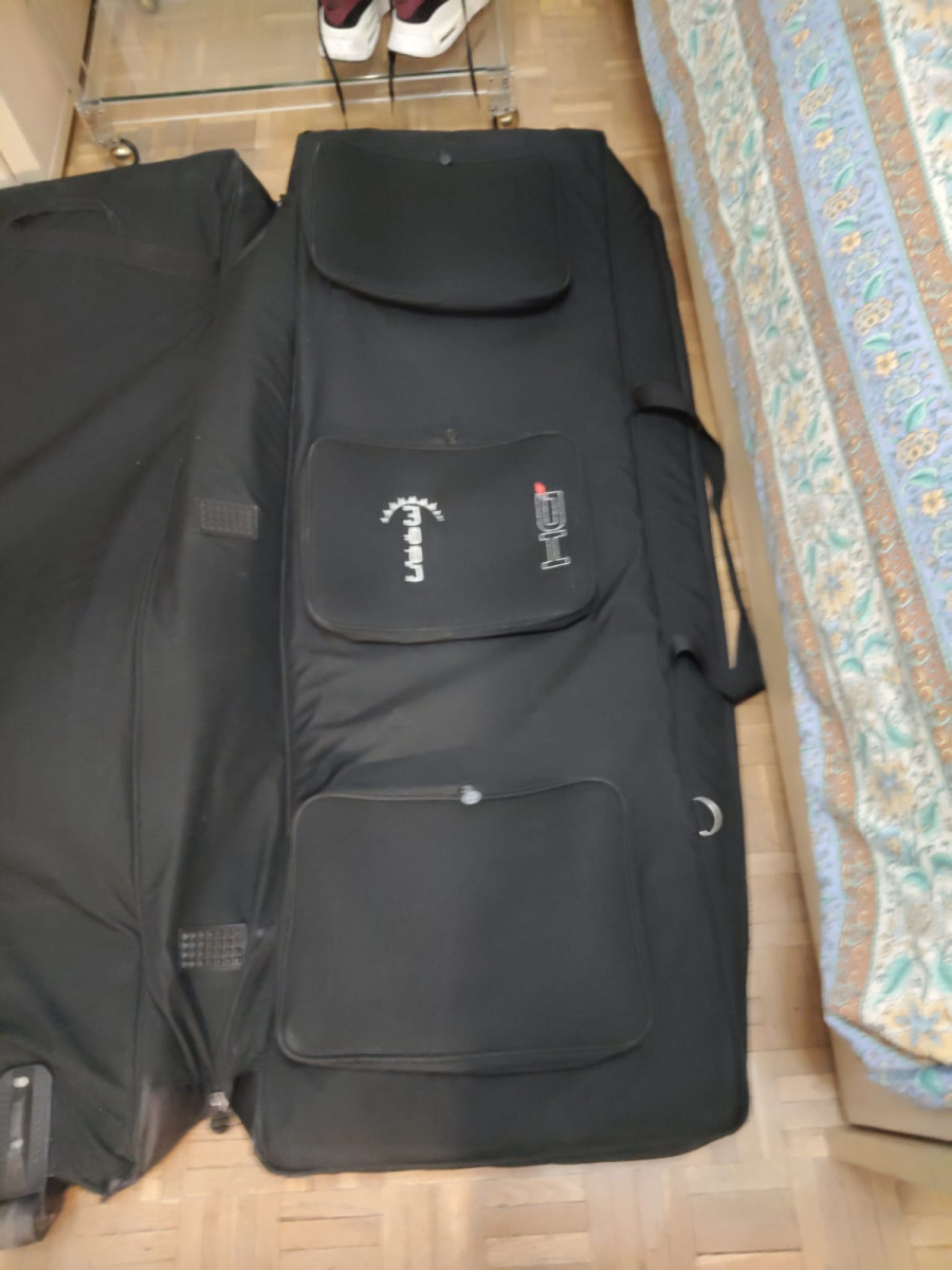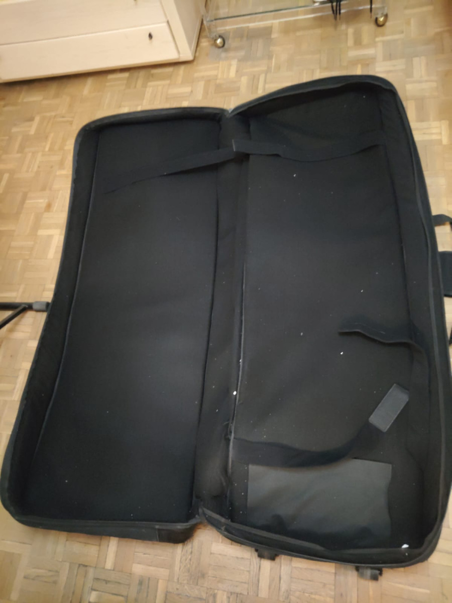 Como nueva, polyester resistente al agua y acolchado de 30 mm con ruedas y medidas 146 x 45,7 x 16 cm. Cambiaría por algún soporte para dos teclados tipo Hercules con base para tamaño piano y la segunda que se pudiera abatir ó tambien por un flightcase para teclados de 61 teclas.