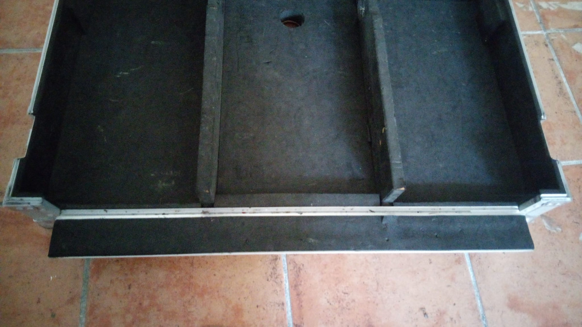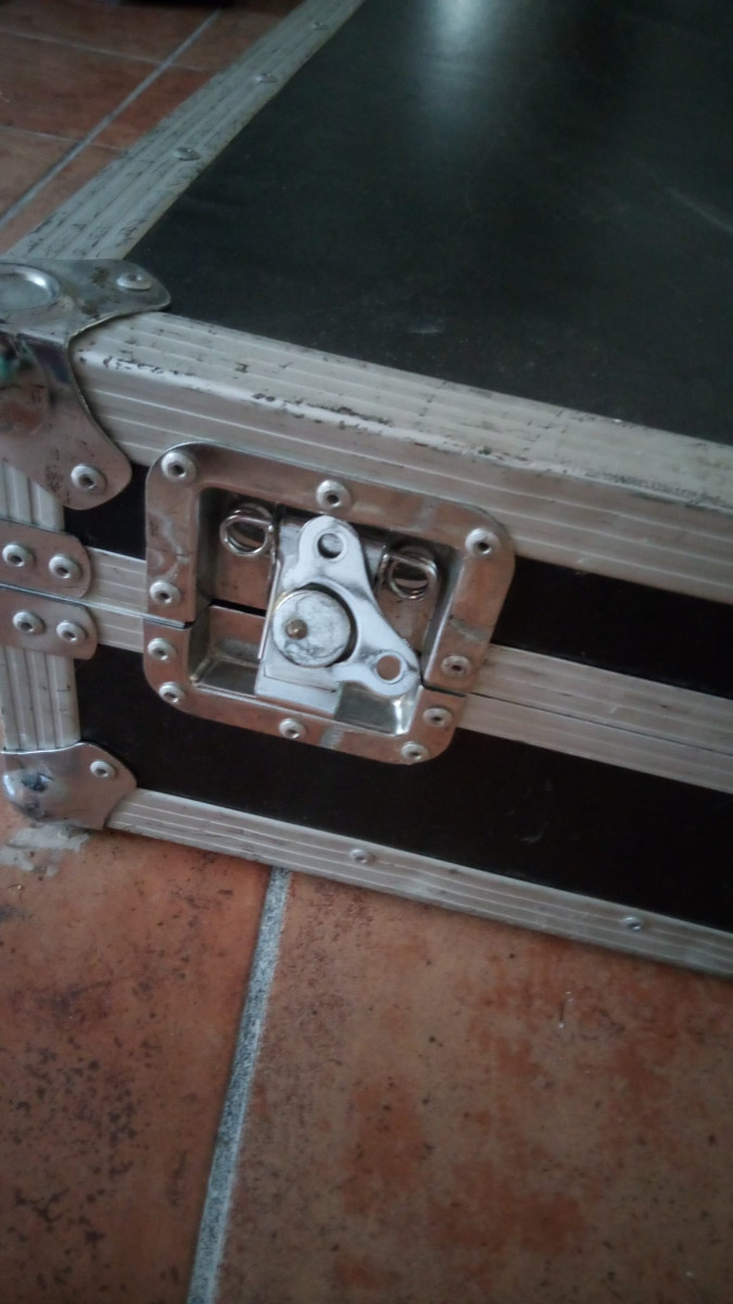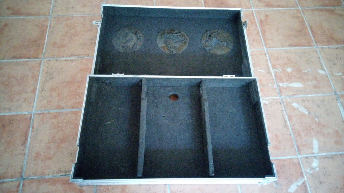 Dos maleta tipo flightcase. Una de ellas con los compartimentos y agujeros para la mesa de mezclas y los CDJ con tapa extraible. La otra es diáfana, con la tapa que siempre queda montada, para guardar material.