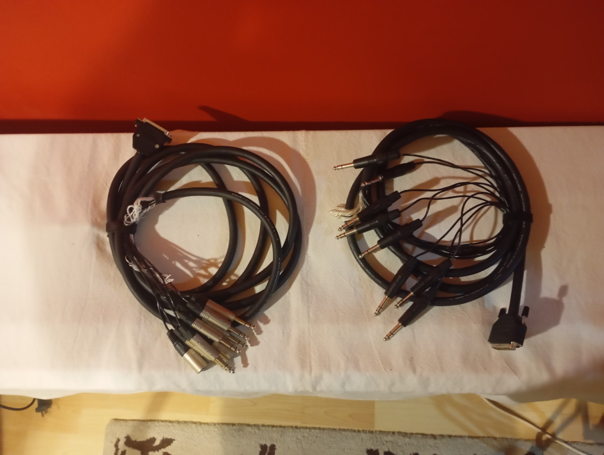 Vendo dos Mangueras multipar de 8 hilos, mogami SUB D25 a Jack ST balanceados, de 3 metros de longitud.