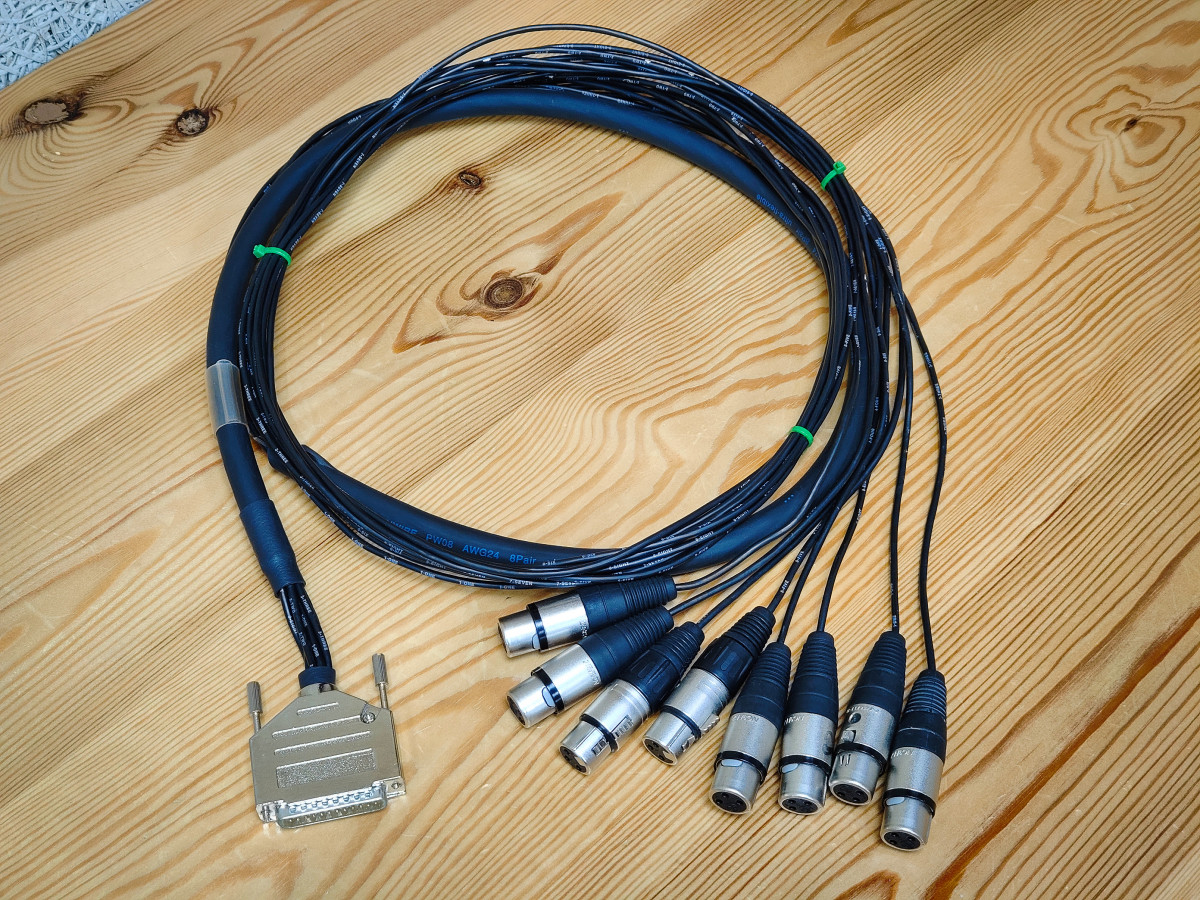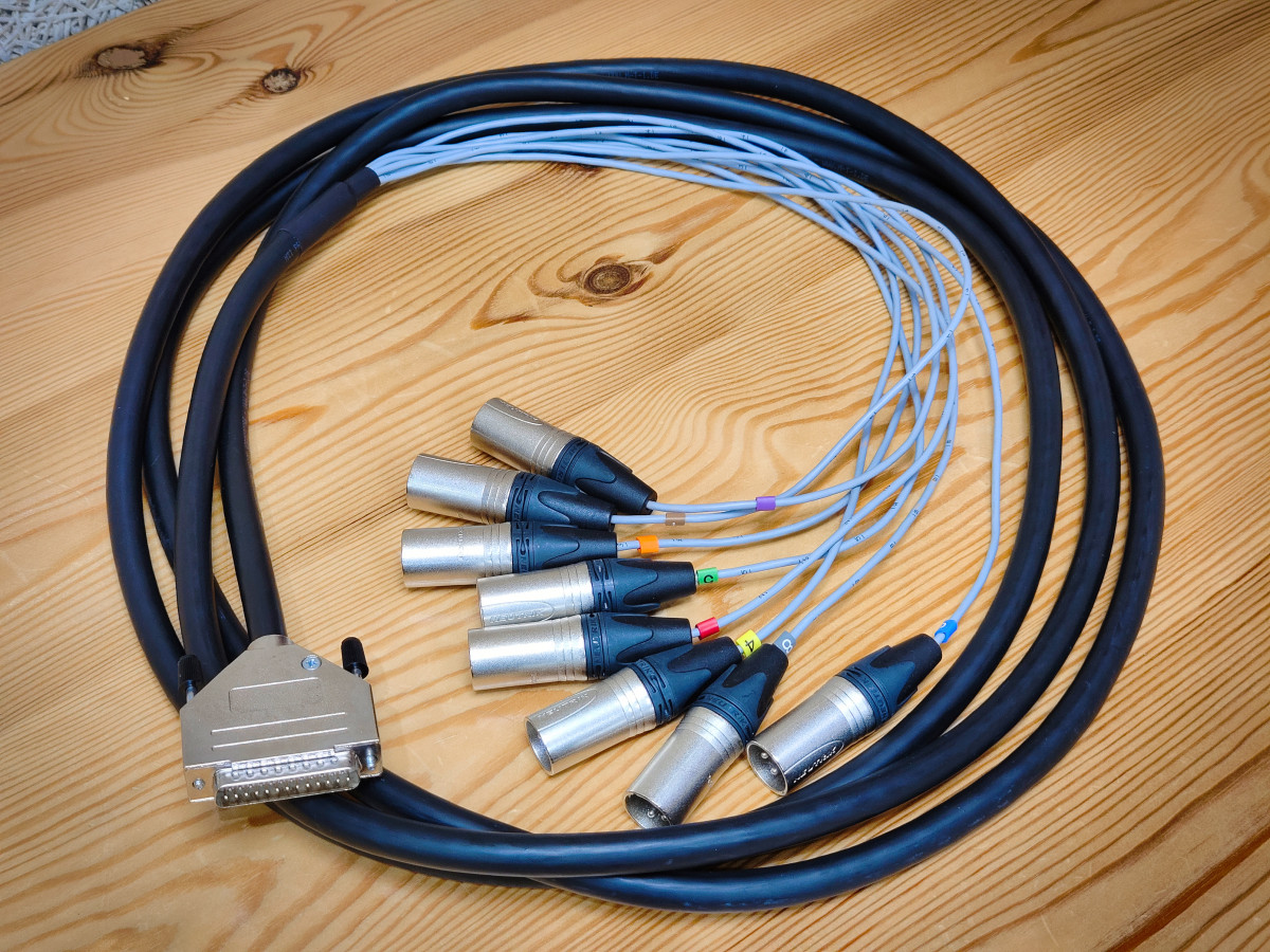 Manguera Sub 25 macho - 8 XLR hebra. Klotz con conectores Neutrik soldado a mano. 2,5 metros con ramificado de 1,5 metros. = 60 euros.