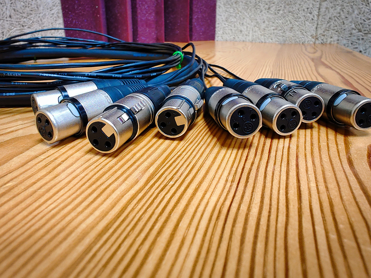 Todas las mangueras están sin pellizcos ni torceduras. Usadas únicamente en interior de muebles de mi estudio. Gomas en excelente estado y conectores tanto Sub 25 como los XLR muy limpios.