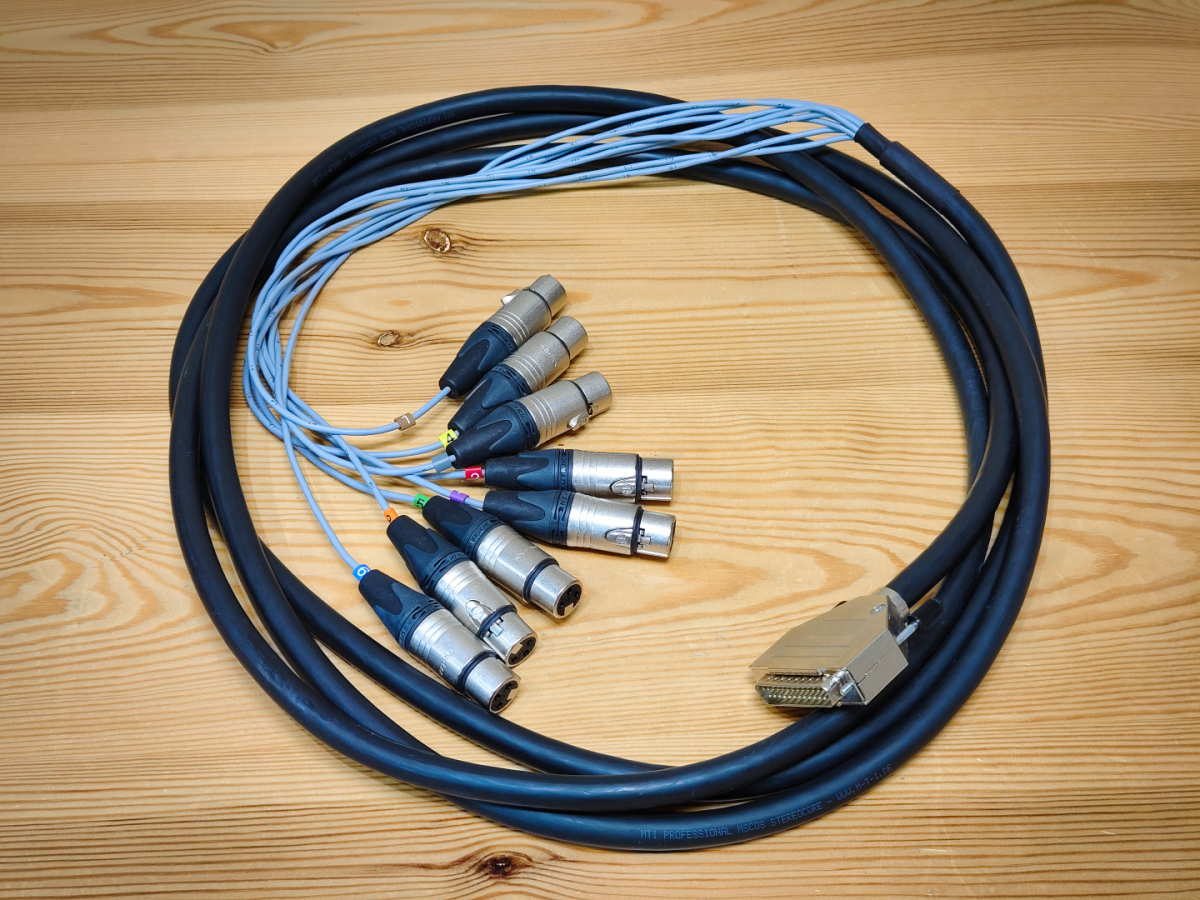 Manguera Sub 25 macho - 8 XLR hembra Neutrik. Marca MTI profesional MSC08. 4 metros = 80 euros.