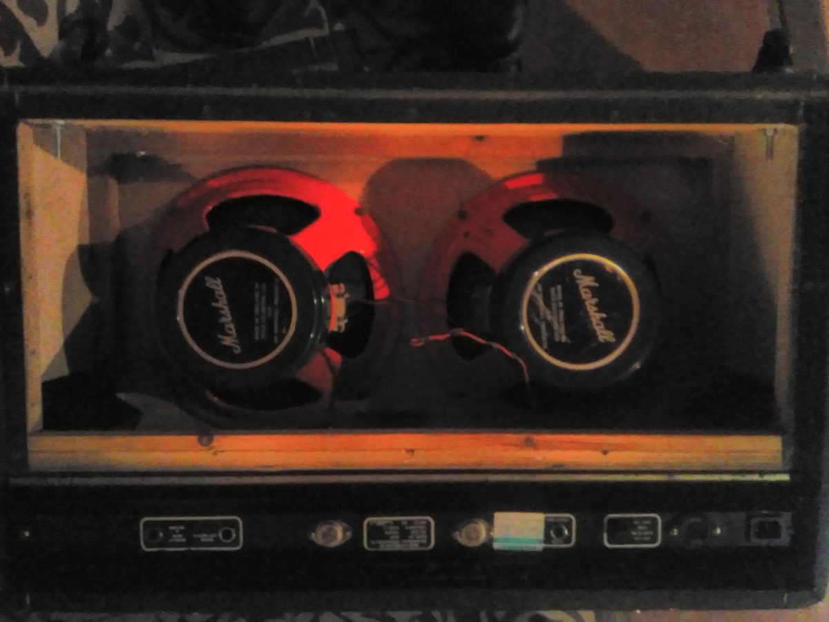 Además estos vienen con pareja de Altavoces G12/50 Blackback Rola Celestion de los 70's T2324 código DJ23 8ohms, Red frame, Marshall Label, prácticamente idénticos a los Rola Celestion G12/50 yellow frame, he visto bastante información sobre ellos en la web y sin muy cotizados, no me extraña pues suenan impresionantes. Creo que venían en pantallas de la época Modelo de 2064 cab, creo recordar.