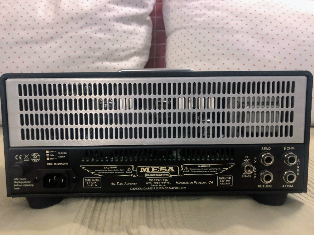Vendo este amplificador que no necesita presentación. Sonido Mesa Boogie Rectifier en poco espacio y peso, potencia suficiente. Copio características más relevantes: Potencia: 25W/5W. 2 canales independientes con Ganancia, Master, Graves, Medios, Agudos y Presencia. Válvulas pre etapa: 5x12AX7 + 2xEL84. Impedancia: 4/8/16 ohmios. Dimensiones (AxAlxPr): 32,0 x 16,0 x 16,0 cm. Peso: 5,5 kg. Fabricado en USA. En perfecto estado. Válvulas con poco uso.Vendo por quedarme sólo con un ampli (me quedo con un Marshall). Entrego con todos los accesorios originales, y además una funda hecha a medida para dejarlo tapado con los cables conectados.