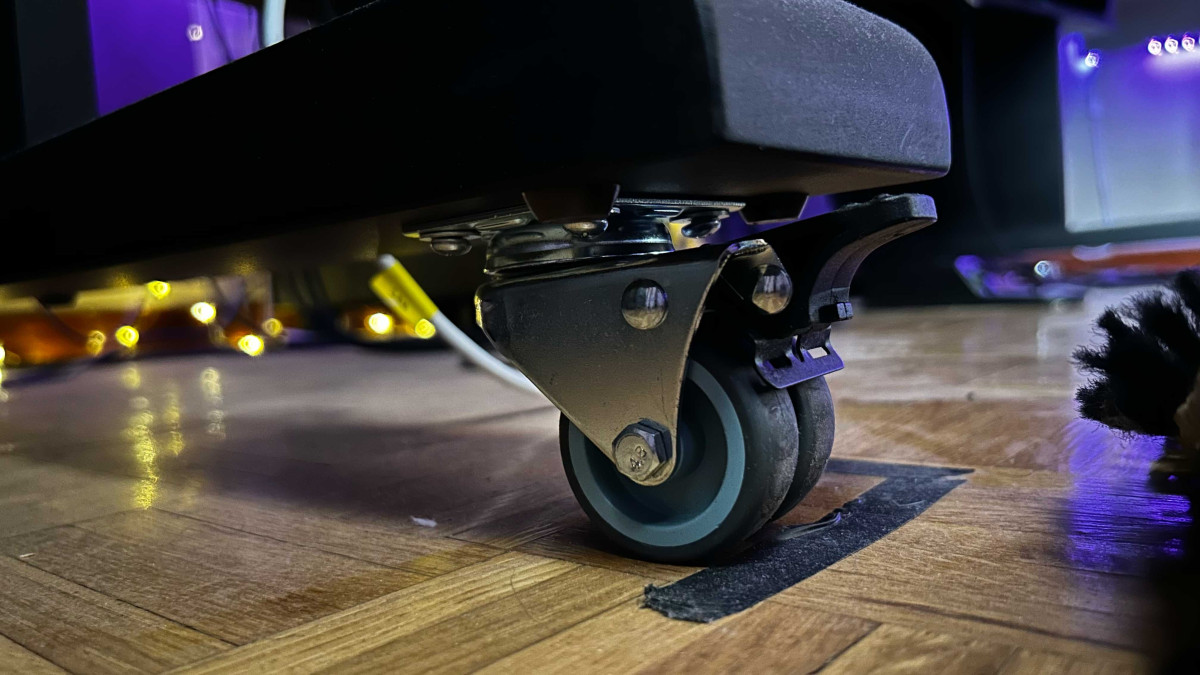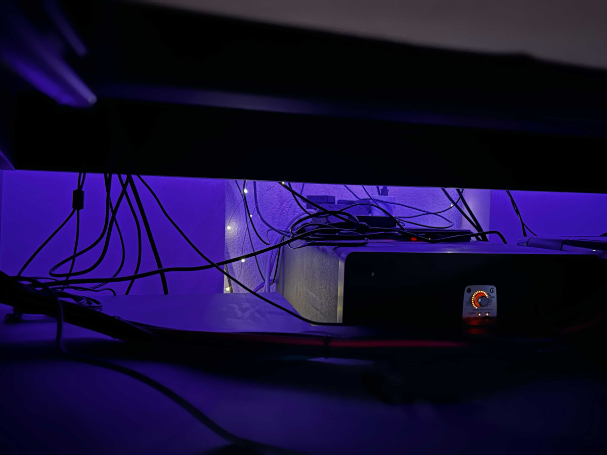 Mesa de alta gama Bram Modular. Forma en ángulo, 8U rack por cada lado. Dispone de agujeros pasa-cables para comunicar cada uno de los lados así como la superficie de la mesa. Bandeja de teclado hecha por mi mismo, se puede dejar, quitar o reemplazar. Es una mesa con unos acabados y calidad de construcción brutales, made in Spain. Vendo por remodelación del espacio de trabajo. También le hice un hueco para encajar el subgrave tal y como se ve en la foto. Y le puse ruedas para poder separar de la pared cómodamente. Anchura 220 cm Altura 105 cm Profundidad 109 cm