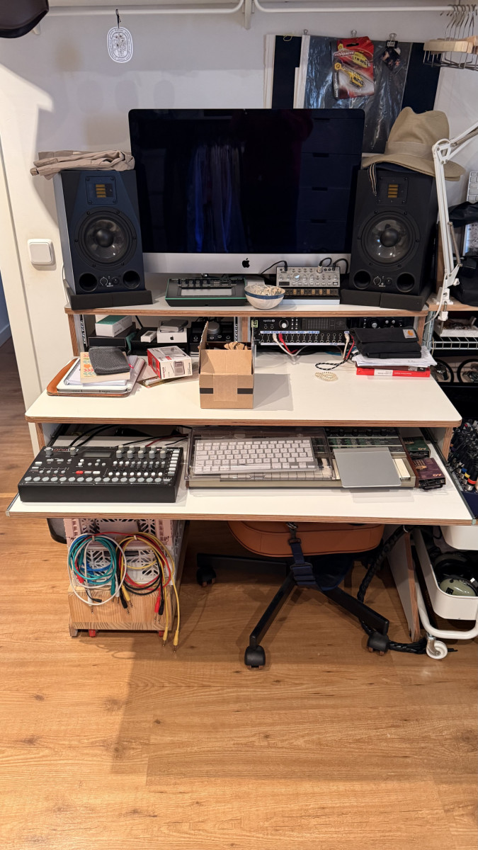 Se vende mesa de estudio Thon Producer Desk, en excelente estado. Tiene dos racks con 6 unidades cada una. Una balda extraible y un compartimento trasero interior para regletas y cables.