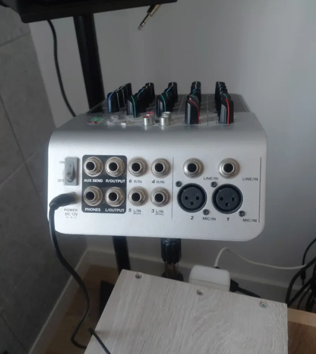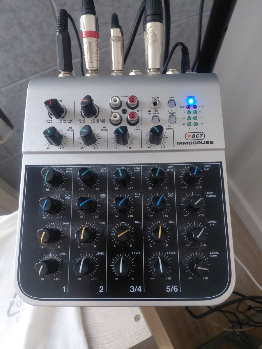 Mesa de mezclas de 6 canales USB formato compacto (2 mono + 2 estéreo), 2 entradas de micro, potenciómetros de alta calidad, ecualizador de 2 bandas, control salida auriculares, entrada salida RCA, salida auxiliar, indicador led de 4 bandas.