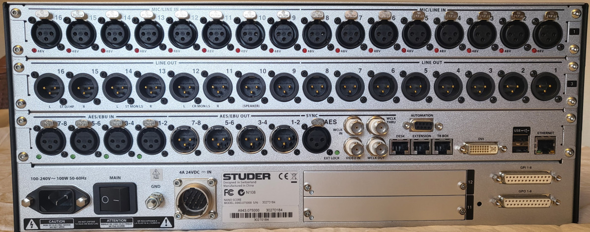 Entradas:16 Mic/Line (Previos Studer), 4 AES/EBU y USB