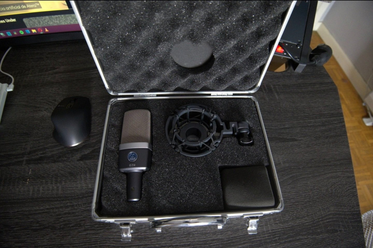 Vendo micro akg en efecto estado, con su maletín y soporte, por 50 euros más entrego una pantalla acústica
