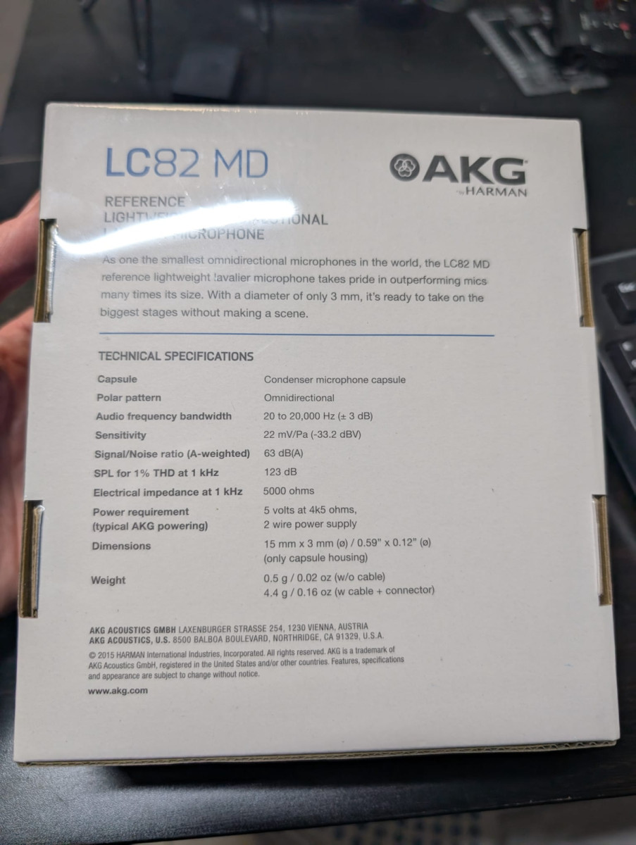 Micrófono Lavalier AKG LC82 MD (Precintado) Omnidireccional - Negro