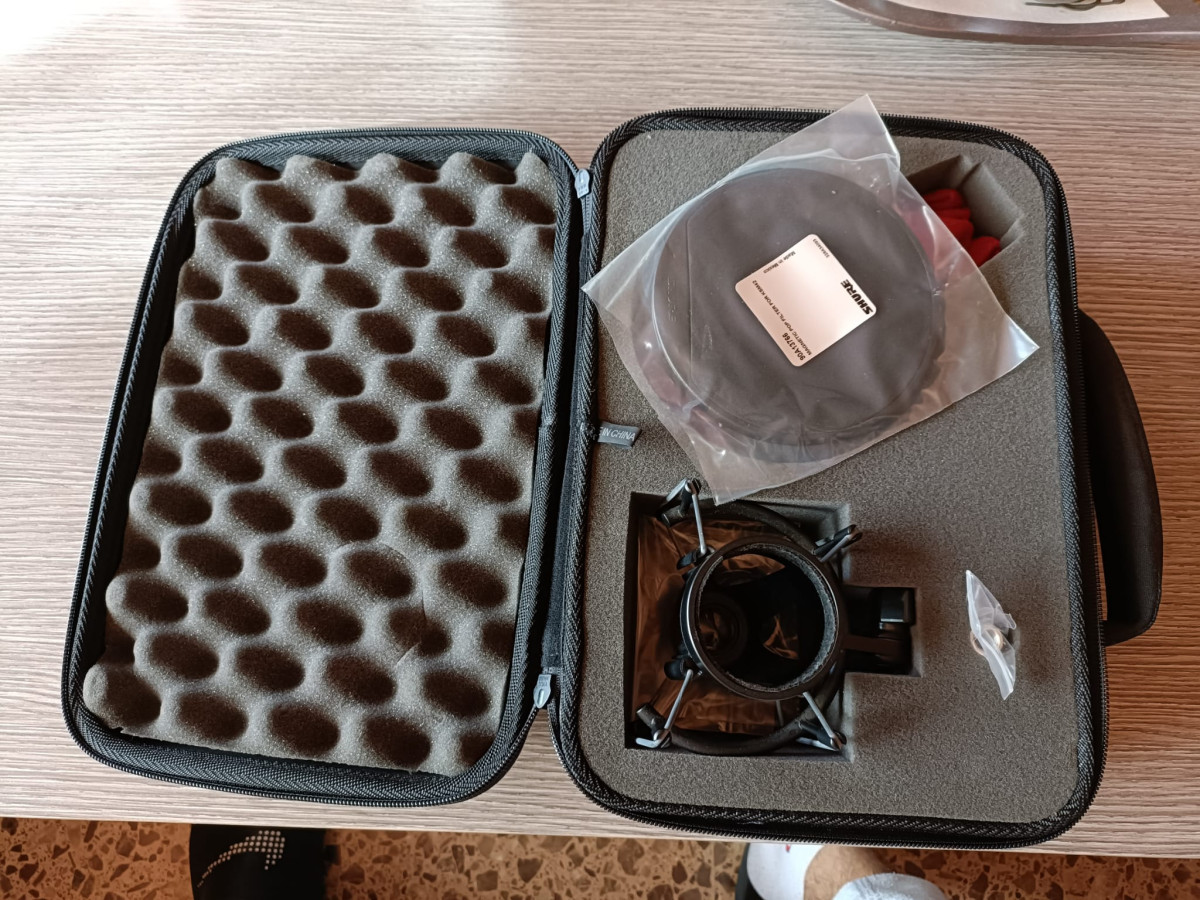 Incluye funda para el micrófono, araña de sujeción, filtro antipop mágnetico, estuche y guía de inicio rápido
