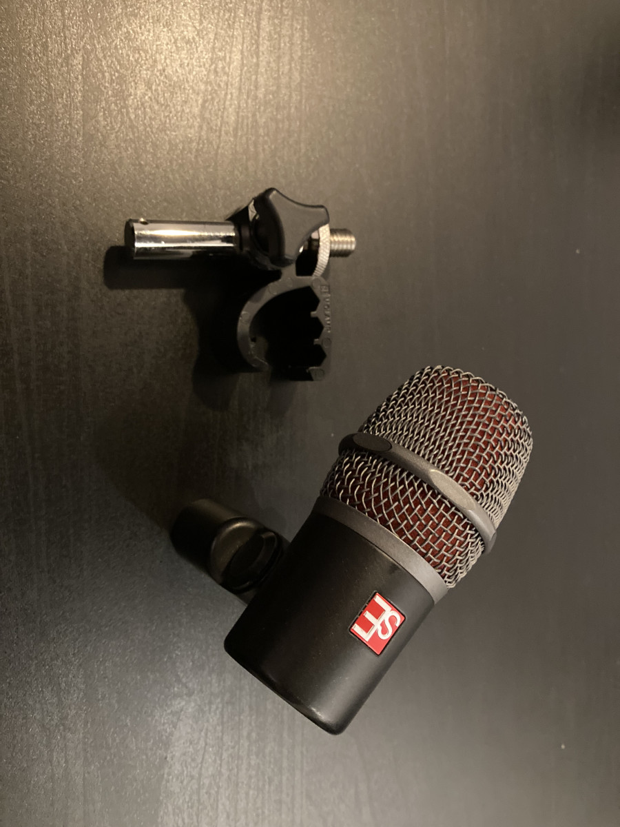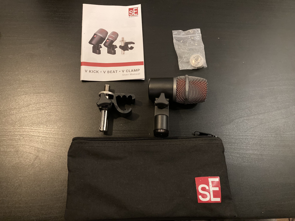 Vendo microfono SE Electronics V Beat para Toms, caja y Percusion con muy poco uso y en perfecto estado, junto con el soporte para batería SE V Clamp, bolsa de transporte y manual.