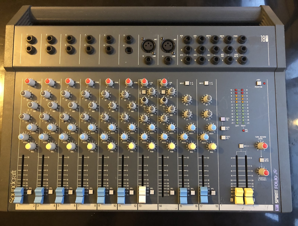 Vendo Soundcraft Spirit Folio si 18/2 en excelente estado (muy cuidado), ideal para mezclar teclados: 6 canales estéreo, 2 mono y 2 más que se pueden usar como entradas estéreo o retorno de efectos; 2 buses auxiliares; total 18 canales de entrada. Fuente de alimentación original.