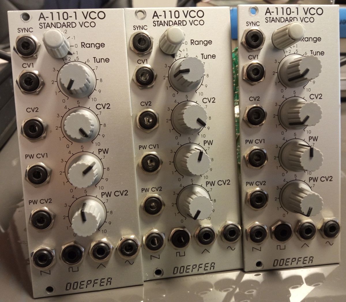 Doepfer A110 VCO Standard. Tengo tres unidades a 70 euros unidad. Si te llevas las 3 serían 180. En buen estado salvo las típicas marcas de enrackar.