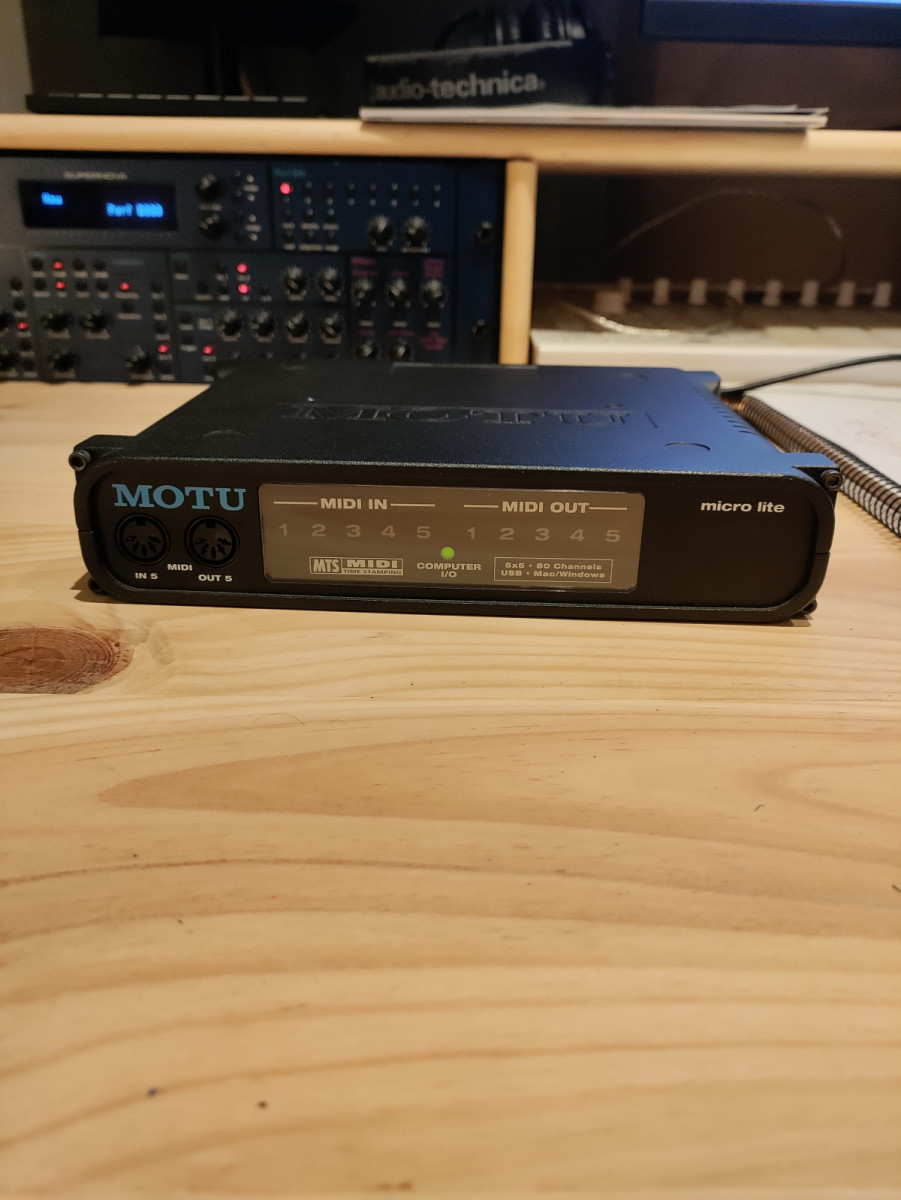 Motu Micro Lite es una interfaz MIDI USB. Dispone de 5 salidas y 5 entradas de conexión MIDI 5 pines.