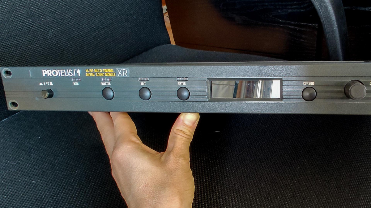 La nomenclatura de los primeros modelos Proteus siempre ha sido un poco lío. Hay mucha información en internet y algunas veces se contradicen entre ellas. Este modelo en concreto en el display al arrancar indica "Proteus/1+2 XR 1990 v2.23" lo que en algunas webs está también nombrado como "Proteus/1 Plus Orchestral", es decir, que lleva todos los presets del "Proteus/1 XR" más 128 presets de una mezcla de los presets del "Proteus/2 Orchestral" en los bancos ROM 6 y 7.