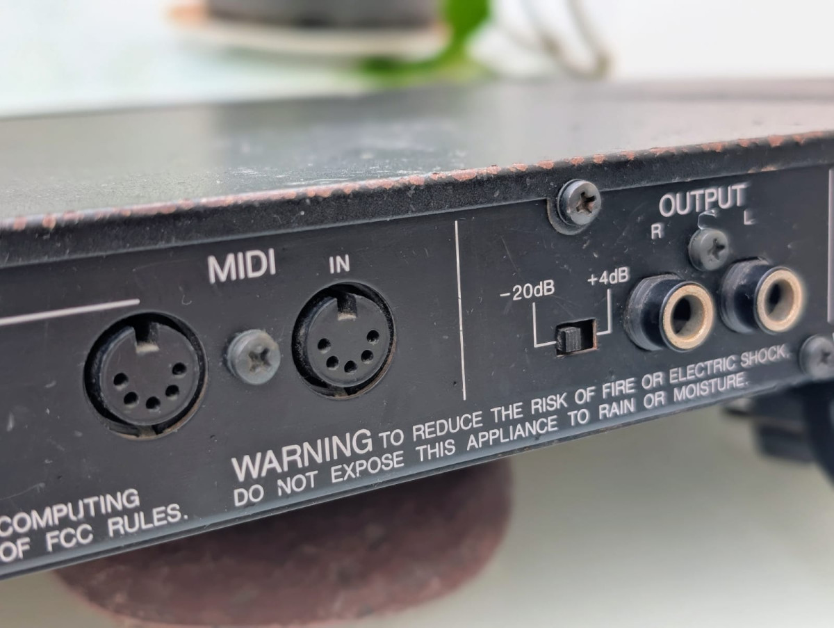 Estética: Presenta desgaste en la pintura de la carcasa superior y algunas marcas de oxidación en los tornillos y bordes del panel trasero (típico de unidades que han estado en rack años), si eres músico sabes que aunque cuides el dispositivo esto pasa. Pero, una vez montado, el frontal luce genial y el sonido es lo que cuenta.