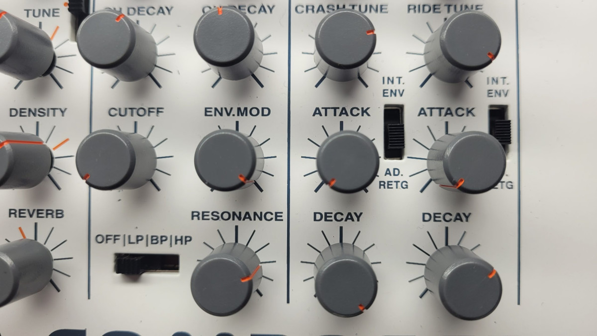 Suena y se siente como una Roland TR-909, pero es incluso mejor ya que todos los componentes son nuevos , mientras que la antigua TR-909 real tiene la mayoría de sus componentes desgastados y que a menudo provocan problemas de ruido e interferencias.